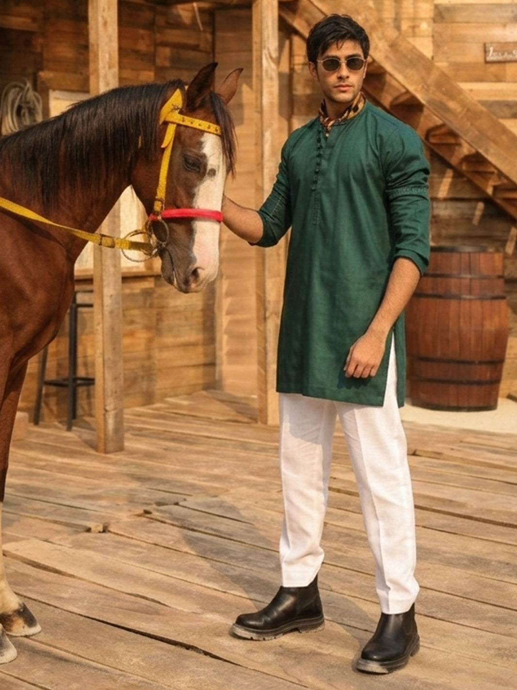GREEN COTTON KURTA TROUSERS | AL-KT-3406/AM-15037A