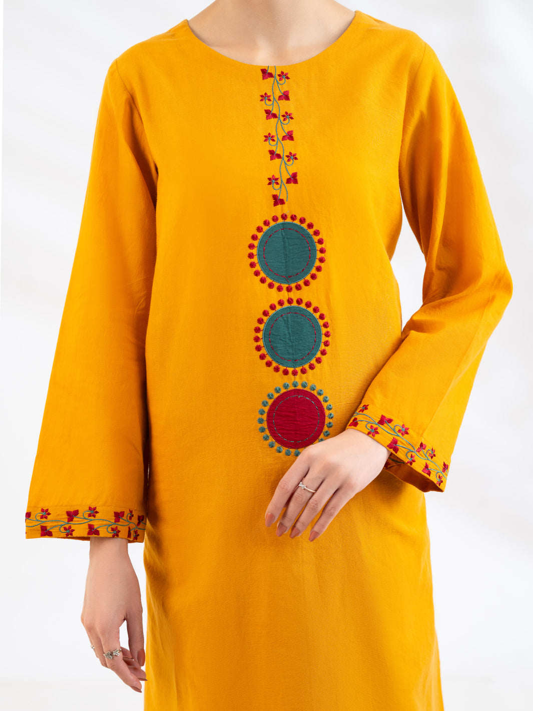 Long length lawn shirt with applique work