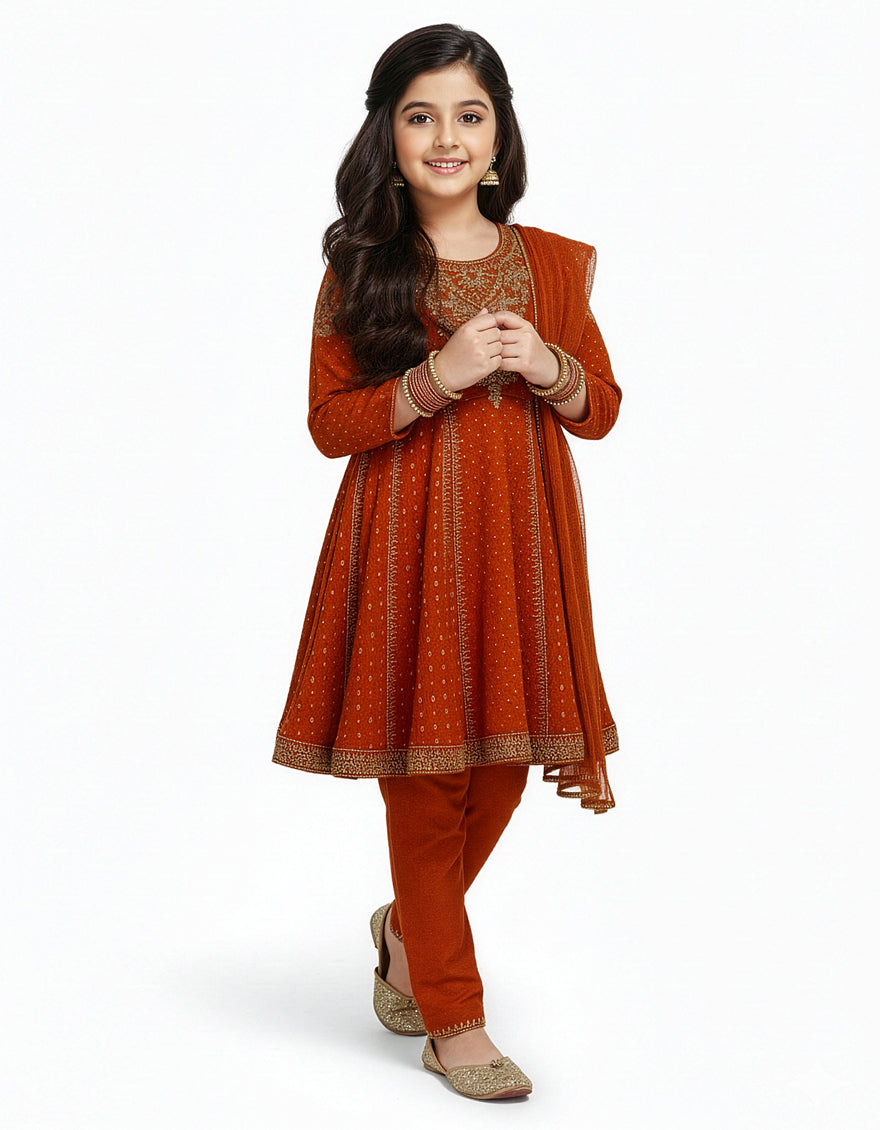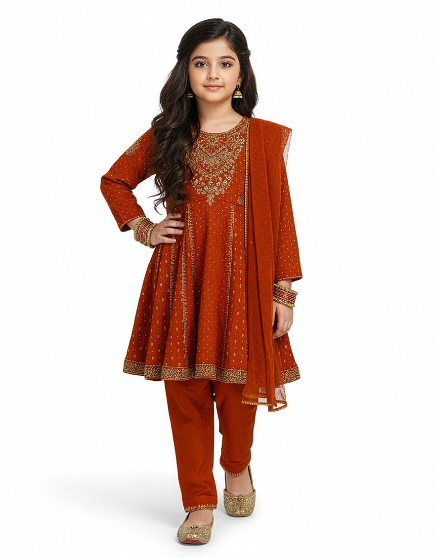 RUST RAW SILK 3PC STITCHED | JGKL-S-JGF-26-1930 FB/SHIREEN-2