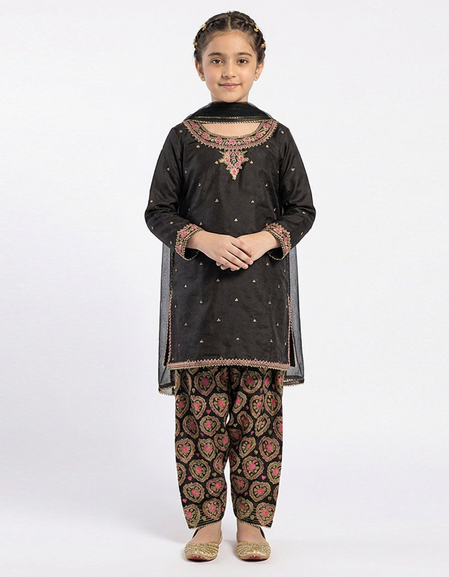 BLACK MAPLE SILK 3PC STITCHED | JGKL-S-JGF-26-1940 FB/SHIREEN-12