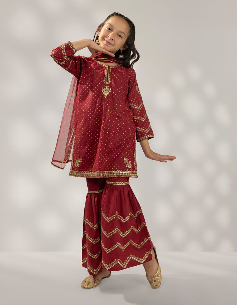 MAROON LAWN SILK 3PC STITCHED | JGKL-W-JGF-25-1923 FB/SHIREEN-03