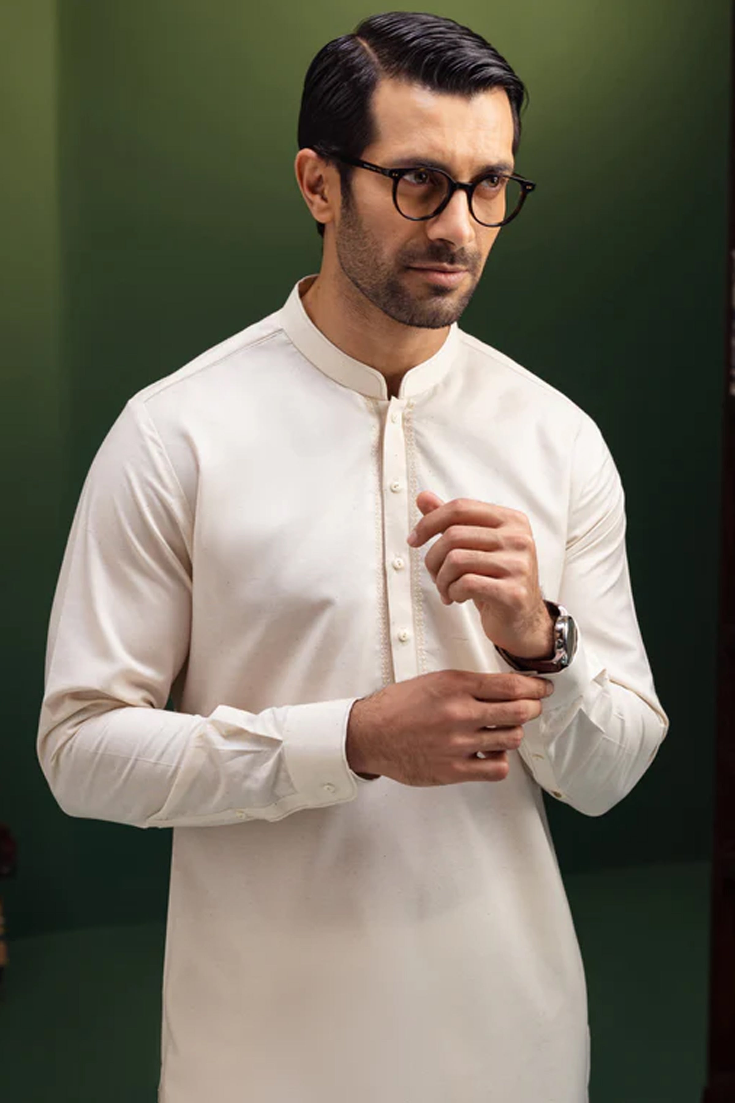 Embroidery On Collar, Front, Cuff, Sleeve Vent & Button Tag.