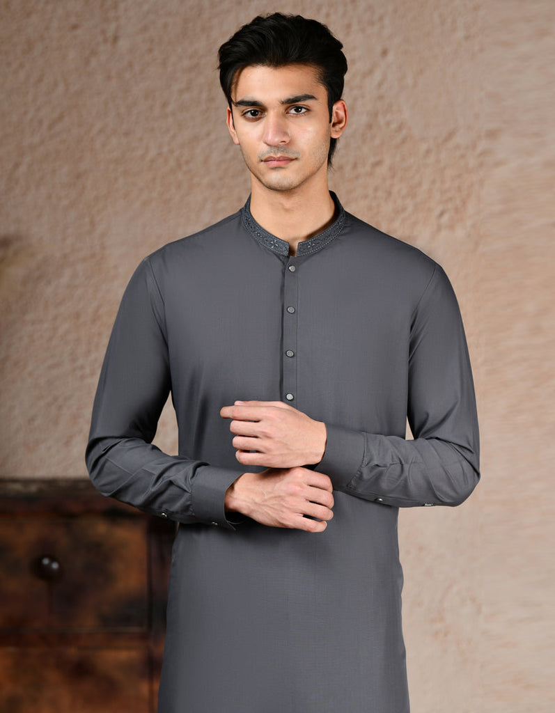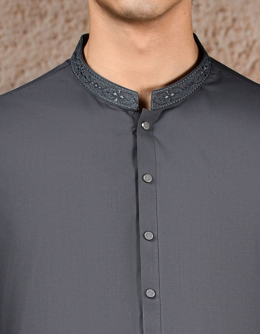 With subtle detailing and a refined silhouette, this Grey Blended Semi-Formal Kameez Shalwar embodies understated elegance, perfect for semi-formal gatherings and events.