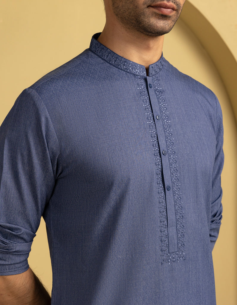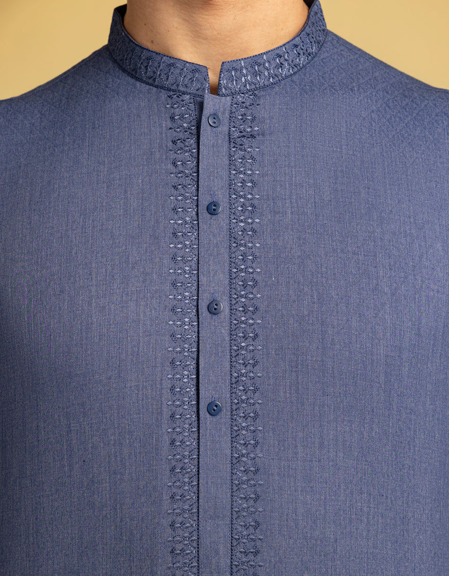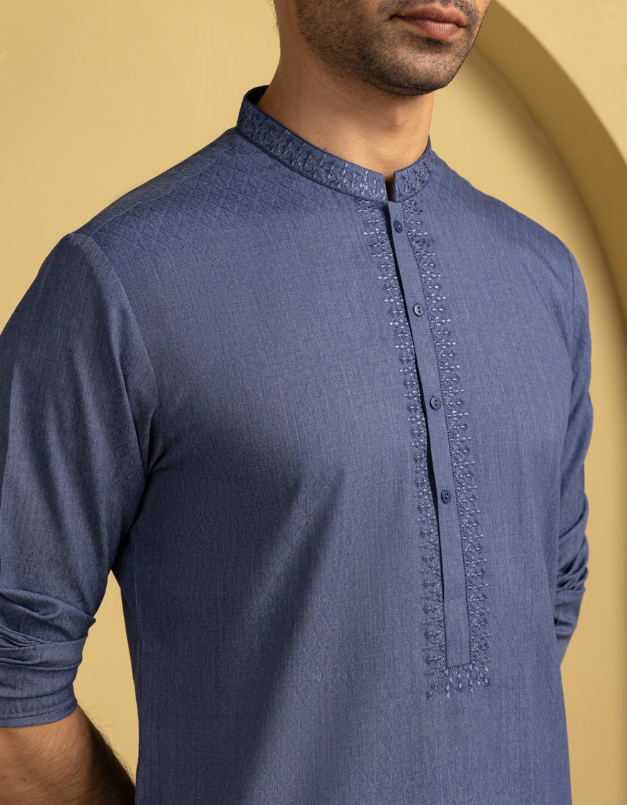 Upgrade your look with this Blue Blended Semi-Formal Kurta, which mixes traditional and modern styles for a classy yet comfortable outfit.