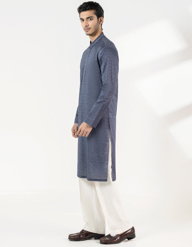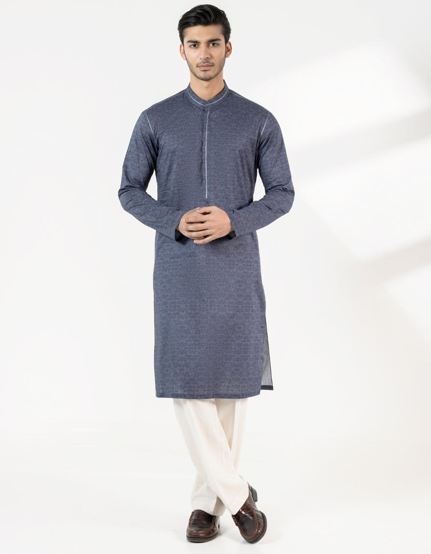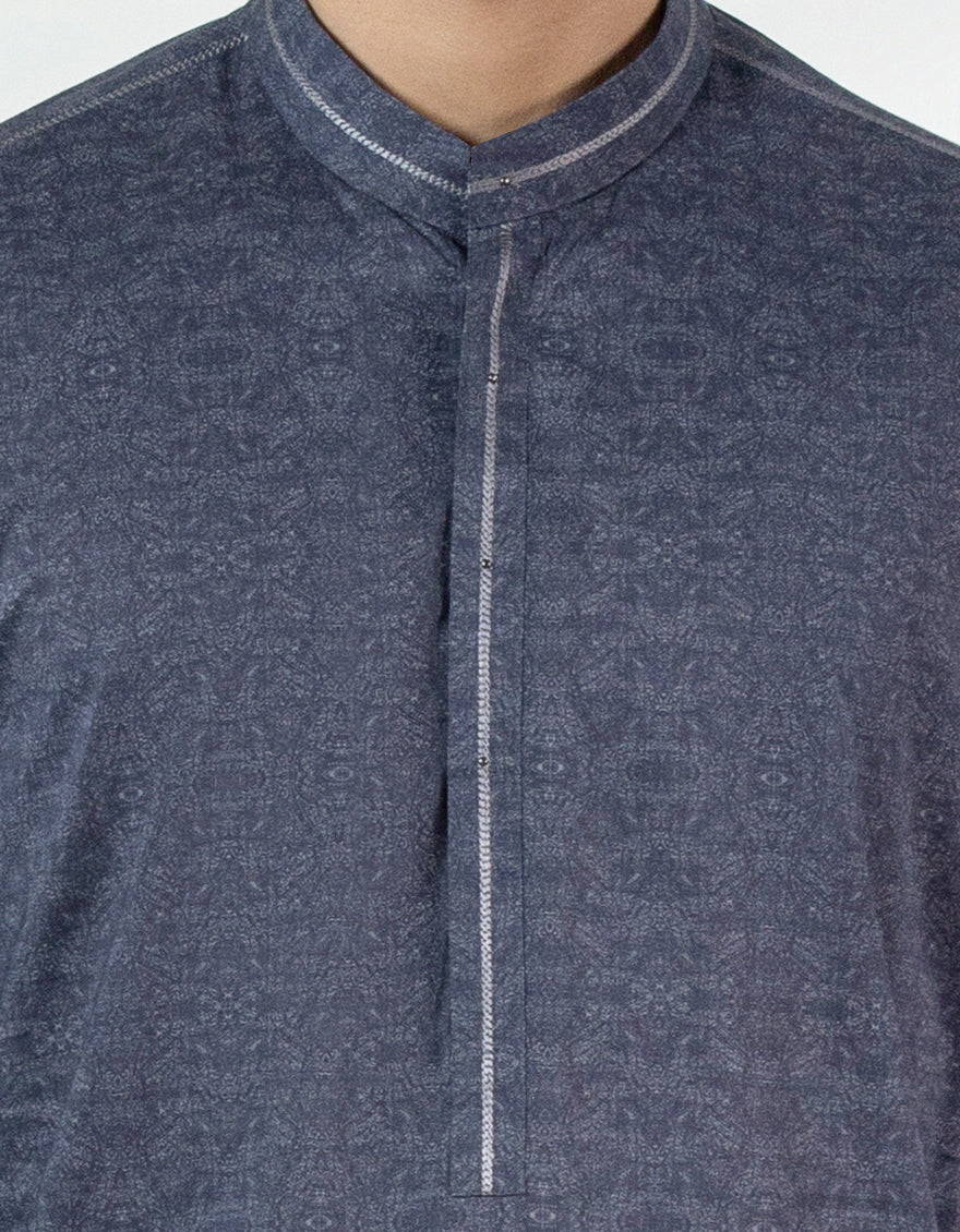 This Dark Grey Cotton Printed Semi-Formal Kurta combines elegance with simplicity. Finished with detailed stitching and smart button styling, it's ideal for semi-formal occasions or casual meetups. A versatile piece that carries both ease and refinement.