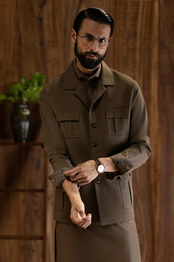 BROWN BLENDED KAMEEZ SHALWAR | CCMKS-S-39611-C3
