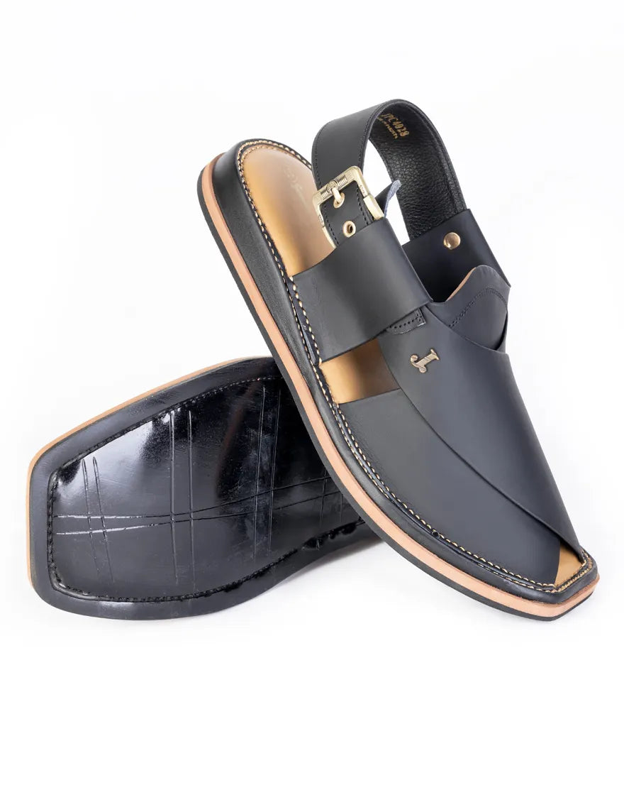 BLACK PLAIN PESHAWARI SANDAL | JJFW-JPC-4028/S25-SC-PLN