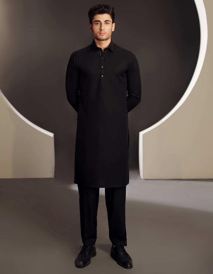 Crafted with simplicity and elegance in mind, this Black Cotton Casual Kameez Shalwar combines traditional aesthetics with modern sensibilities, ensuring a timeless and versatile garment.
