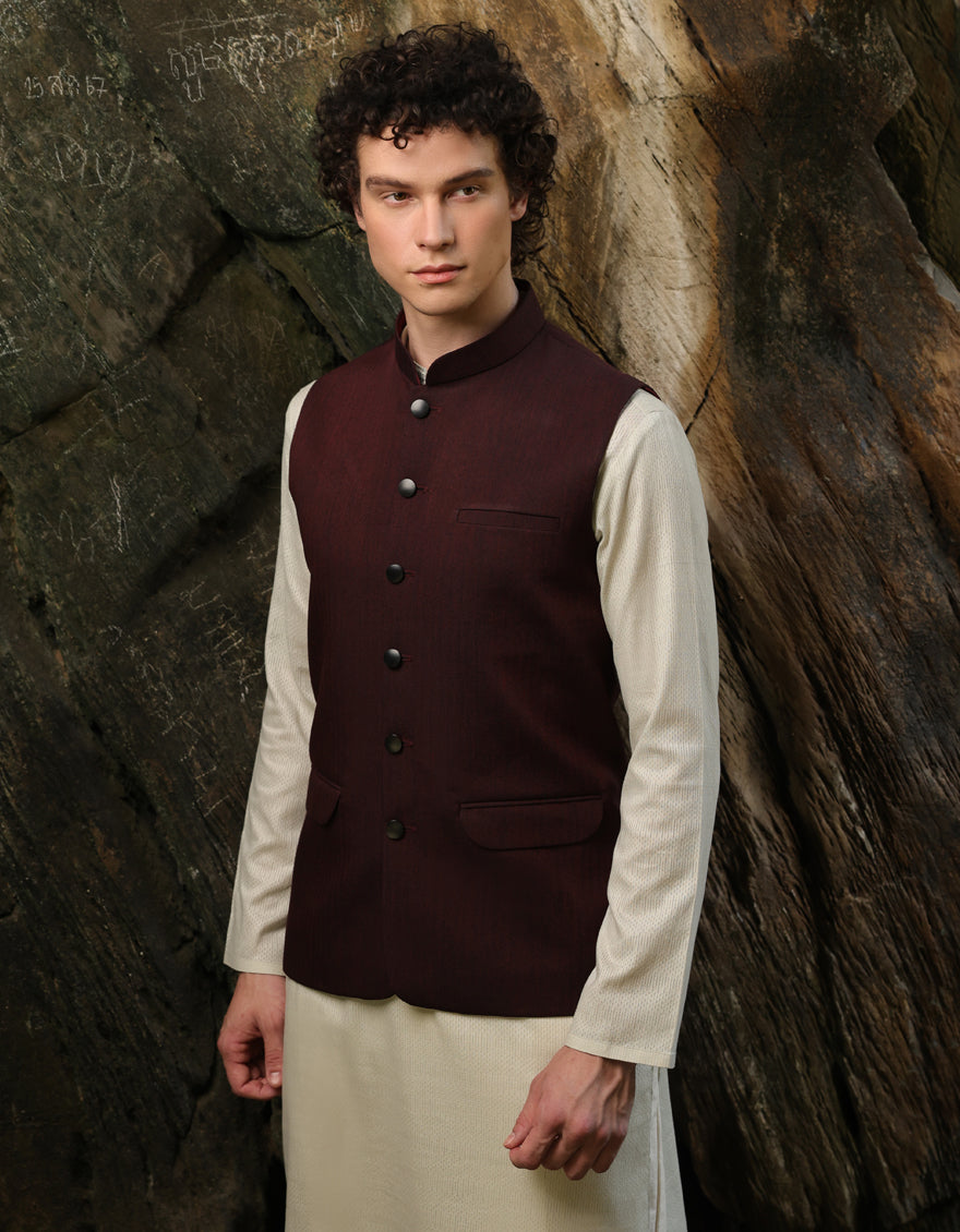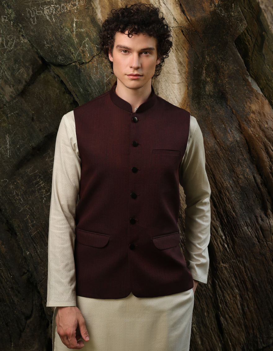 MAROON SUITING WAISTCOAT | JJVC-A-27384-R14-AP/S25/JJ9546-PN