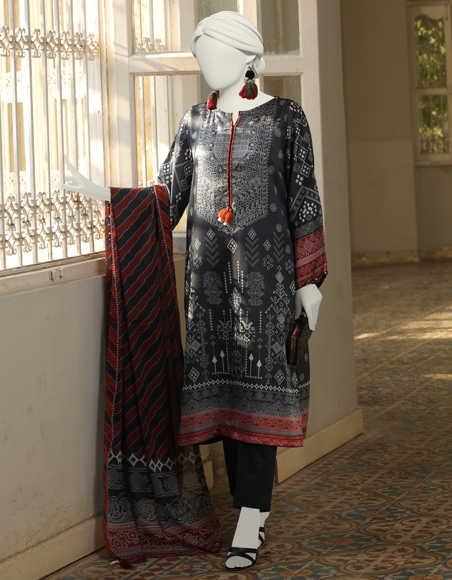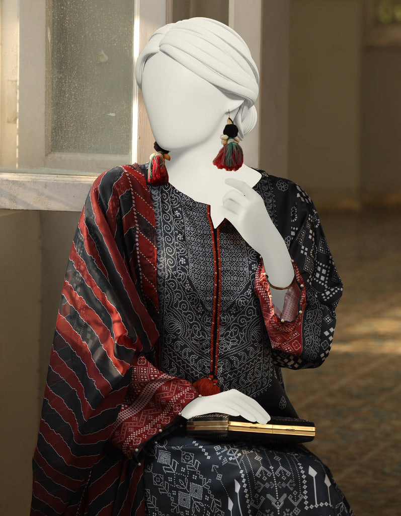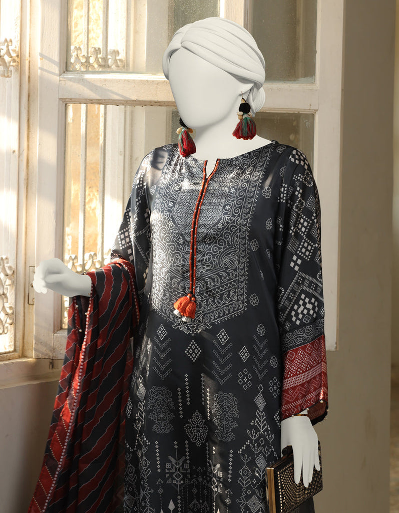 BLACK IMPURE SILK 3PC STITCHED | JLAWN-CD-04-392/S