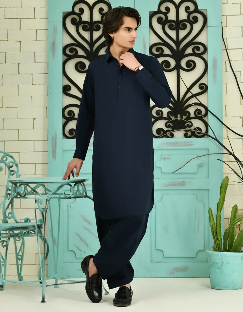 NAVY BLUE BLENDED KAMEEZ SHALWAR | JTKS-A-40198-R15-AP/S25/JJ9772-PN