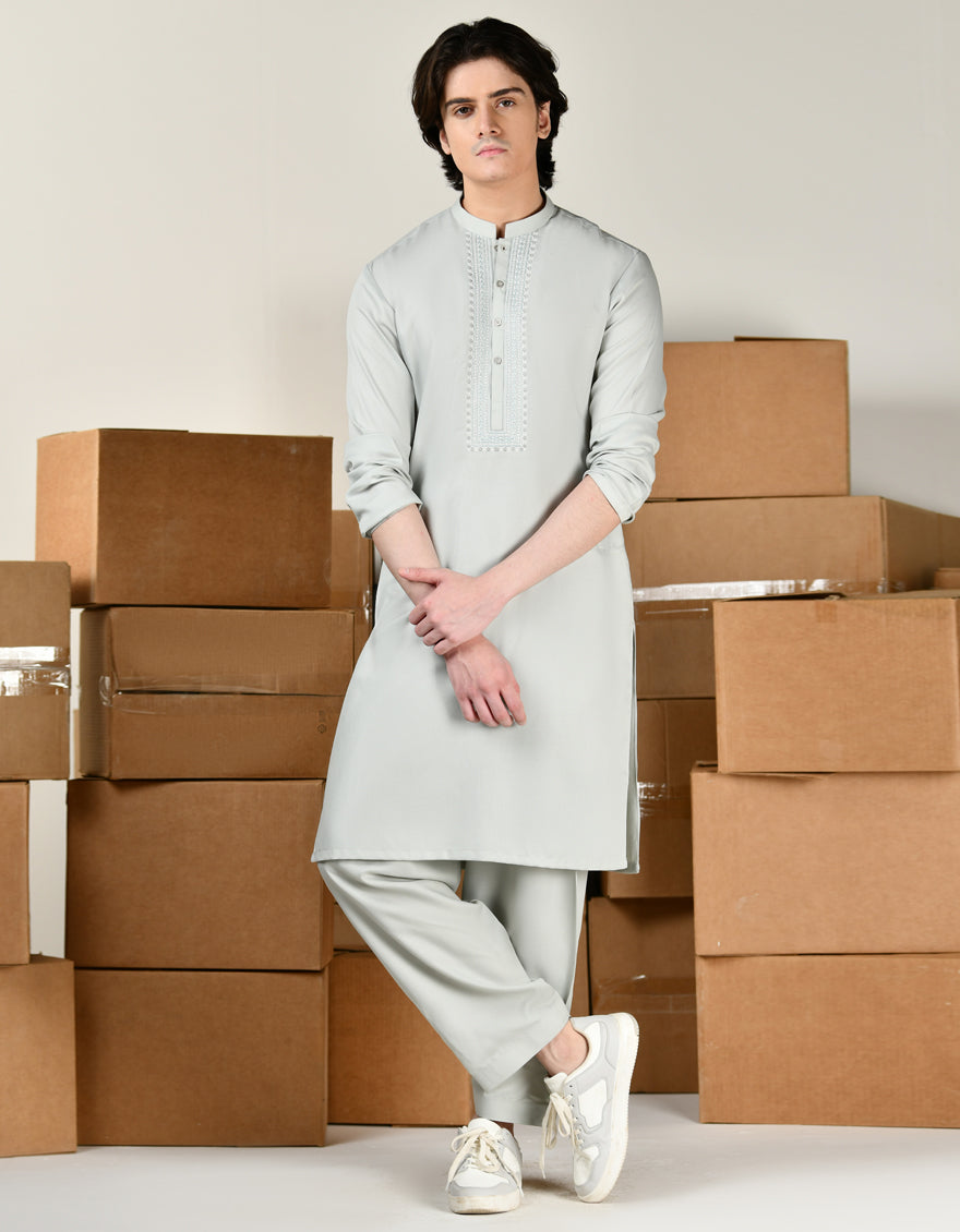 A perfect fusion of tradition and contemporary fashion, this kameez shalwar for teen boys exudes effortless style. Its classic appeal offers versatility, suitable for a wide range of events and environments.