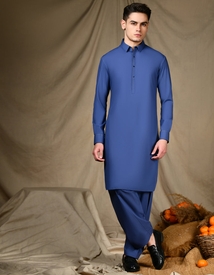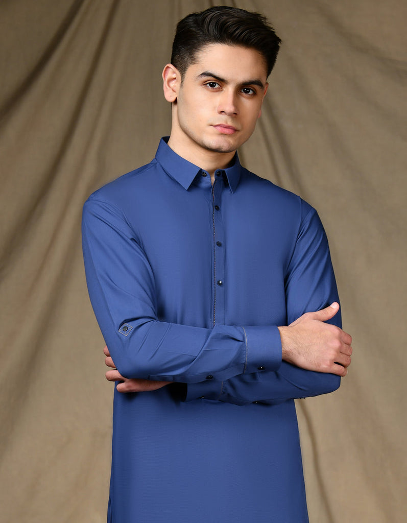 INK BLUE BLENDED KAMEEZ SHALWAR | JTKS-CD-04-34650