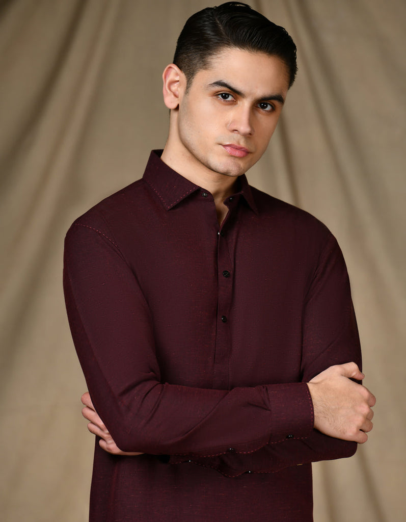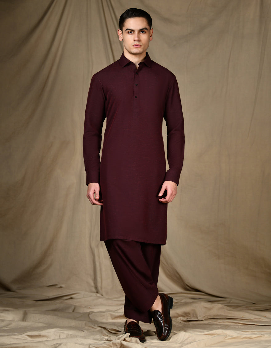 MAROON BLENDED KAMEEZ SHALWAR | JTKS-CD-04-46291