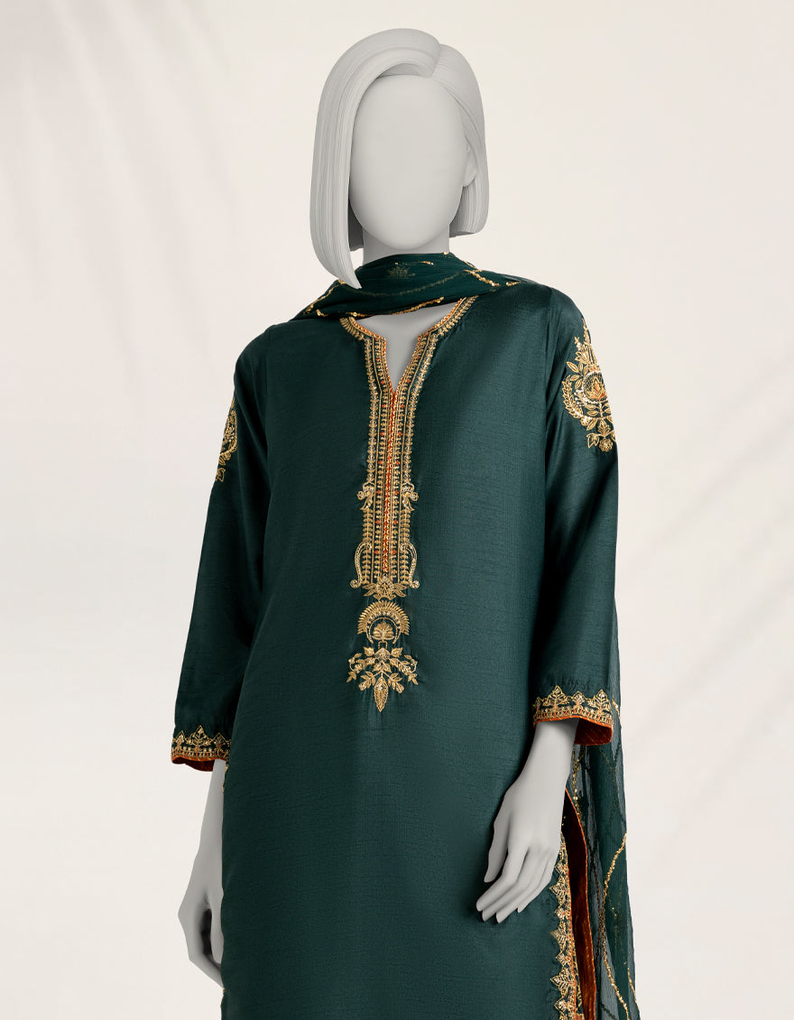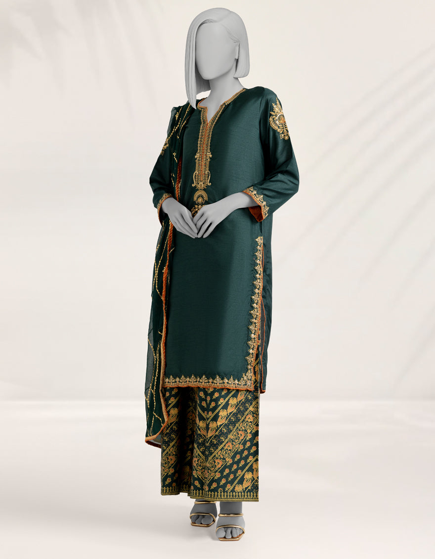 GREEN VISCOSE 3PC STITCHED | JJPW-W-JPS-25-3983 FB/DANEEN-3
