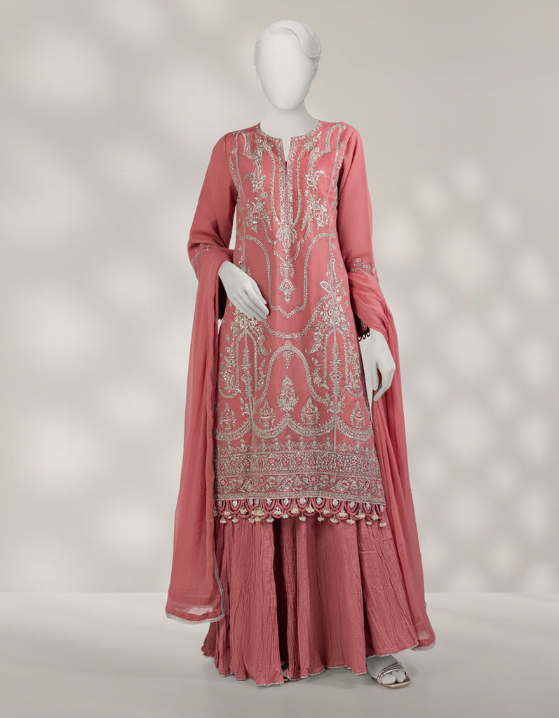 PINK ORGANZA 3PC UNSTITCHED | JJLS-W-JFU-25-710 FB/FALAK-02