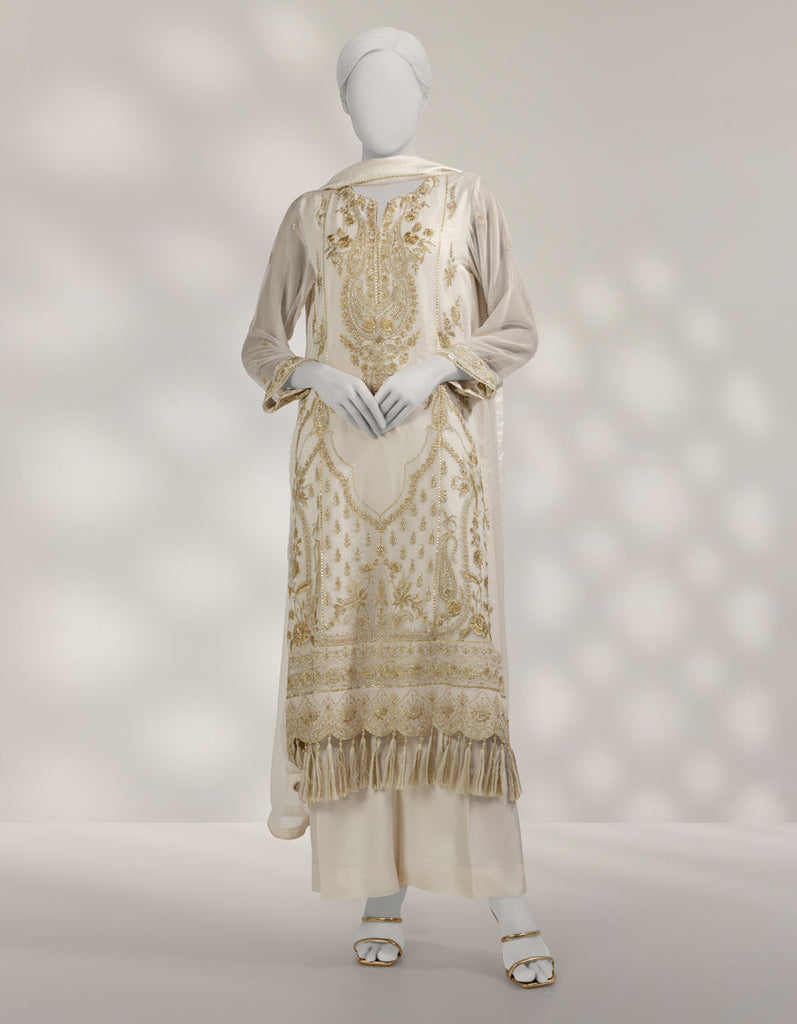 OFF WHITE CHIFFON 3PC UNSTITCHED | JJLS-W-JFU-25-713 FB/FALAK-05