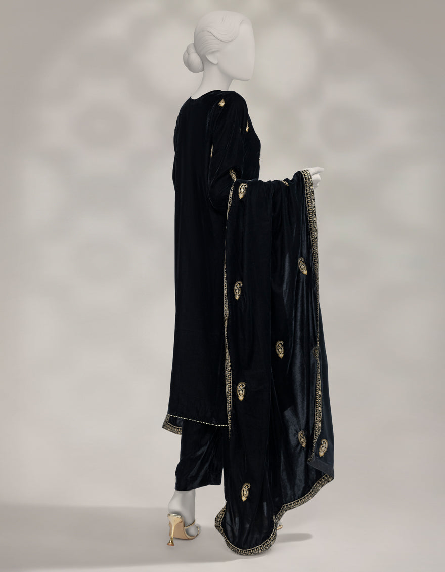 BLACK VELVET 3PC UNSTITCHED | JLAWN-W-25-3623 LUXE-C-1