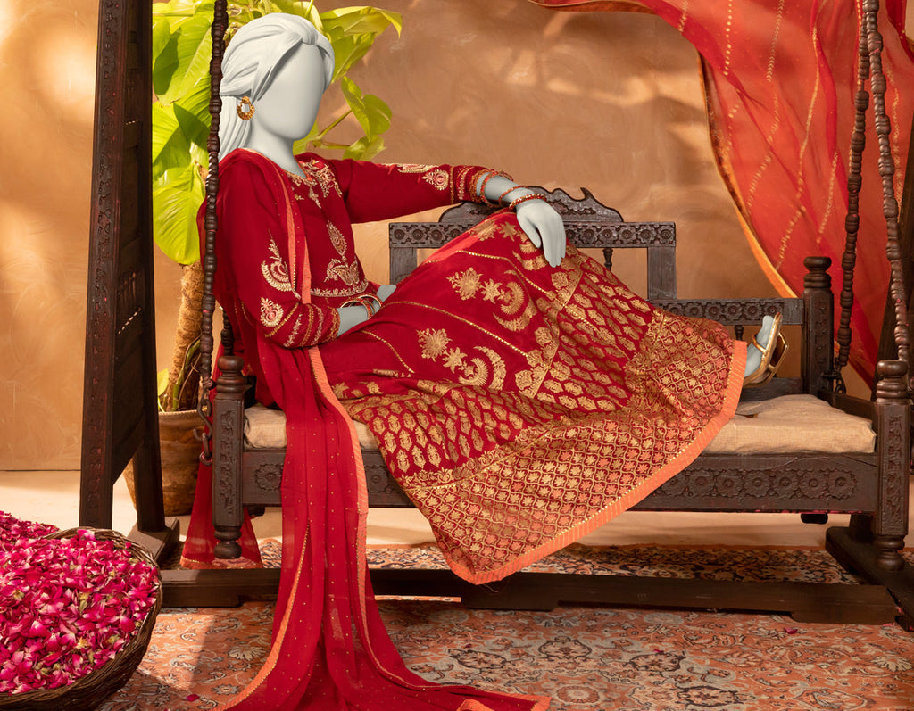 MAROON PAPER COTTON 3PC STITCHED | JJPW-S-JPS-25-3901 F