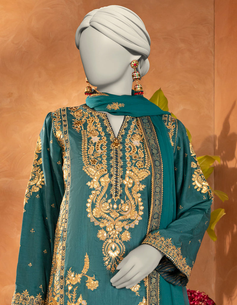 GREEN RAW SILK 3PC STITCHED | JJPW-S-JPS-25-3915 F