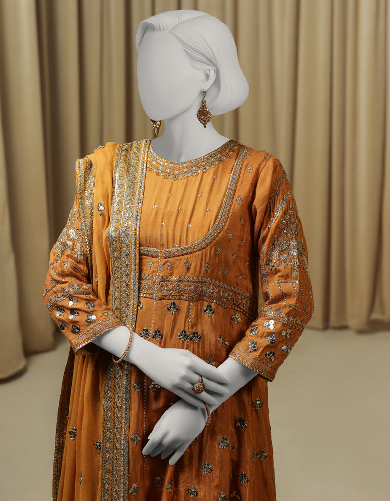 OCHRE RAW SILK 3PC STITCHED | JJPW-S-JPS-25-3976 FB/INARA-14