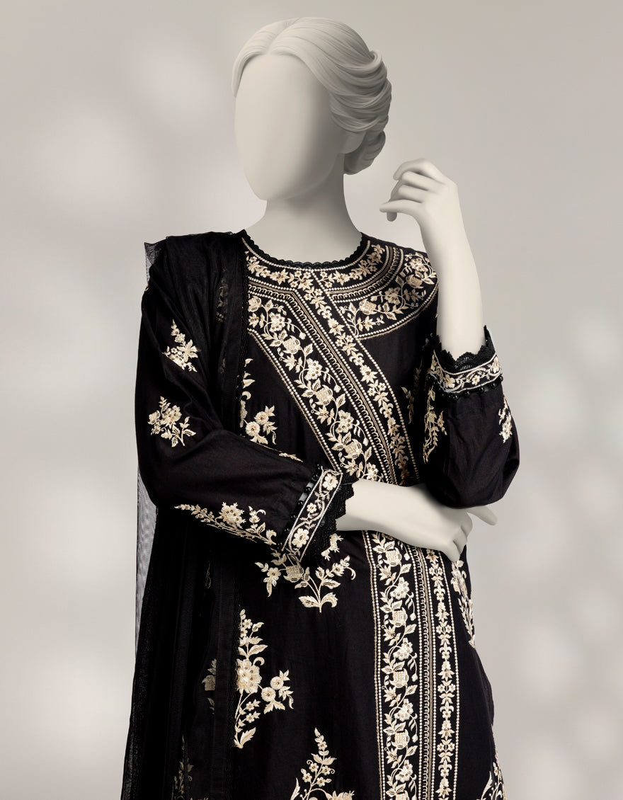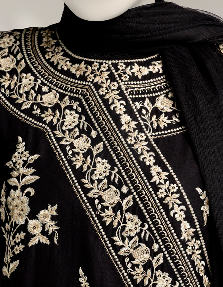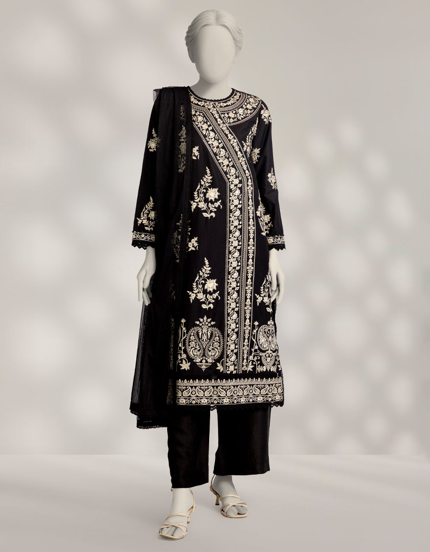 BLACK RAW SILK 3PC STITCHED | JJPW-S-JPS-25-3960 FB/INARA-7