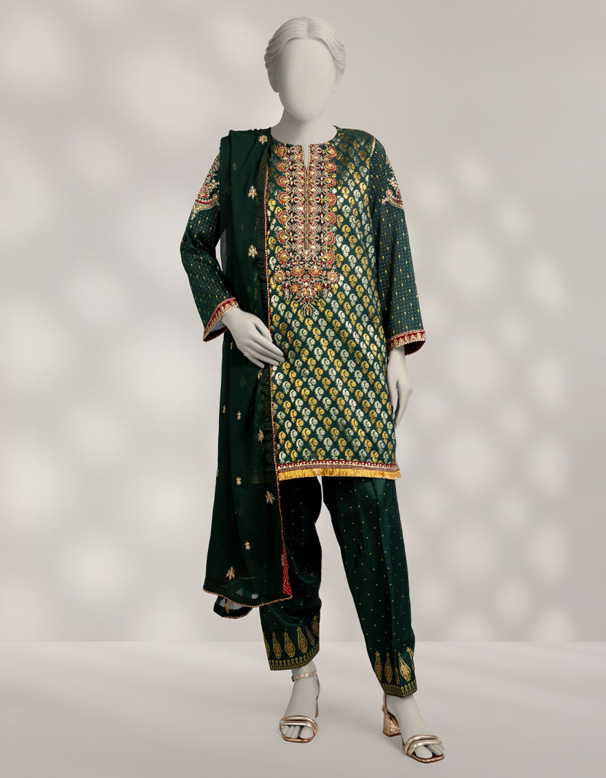 GREEN JACQUARD 3PC STITCHED | JJPW-W-JPS-25-3944 FB/DANEEN-1