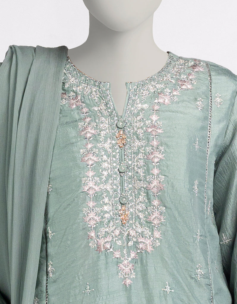 GREEN RAW SILK 3PC STITCHED | JJPW-W-JPS-25-3945 FB/DANEEN-02