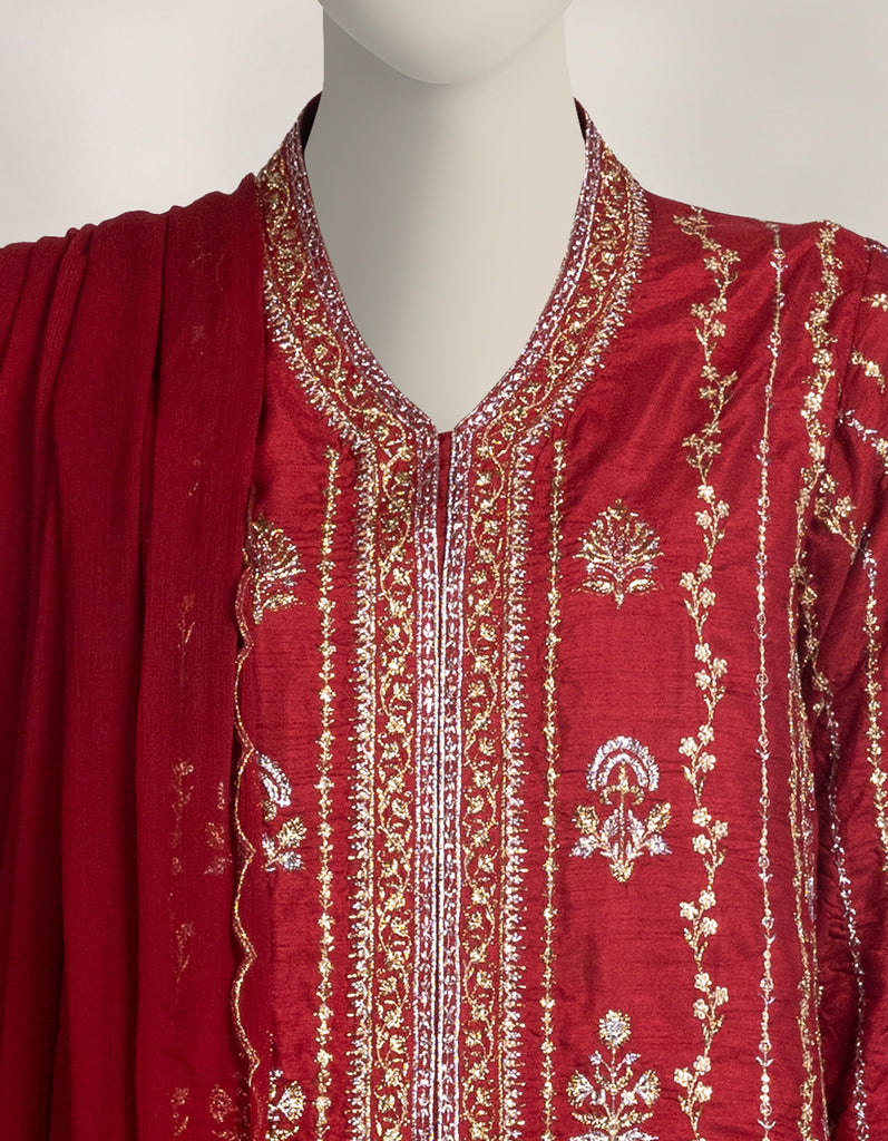 MAROON RAW SILK 3PC STITCHED | JJPW-W-JPS-25-3957 FB/INARA-04