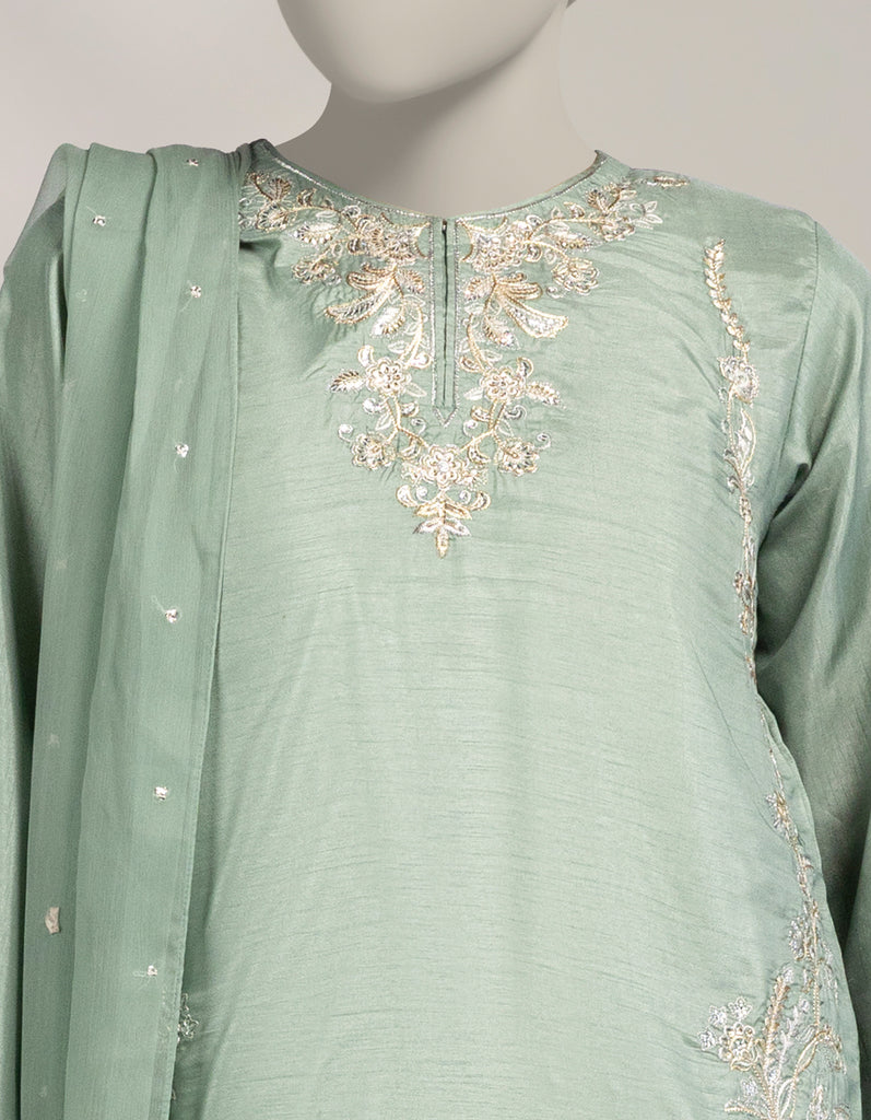 GREEN RAW SILK 3PC STITCHED | JJPW-W-JPS-25-3965 FB/INARA-12
