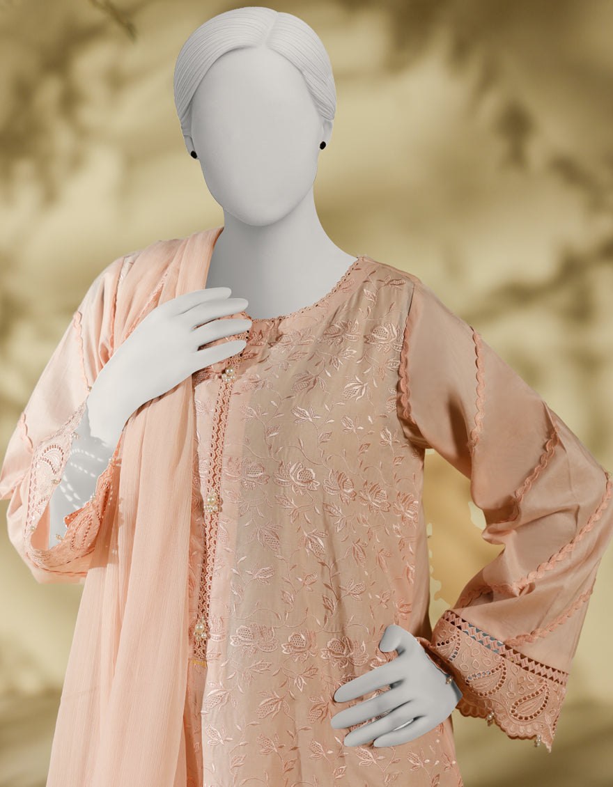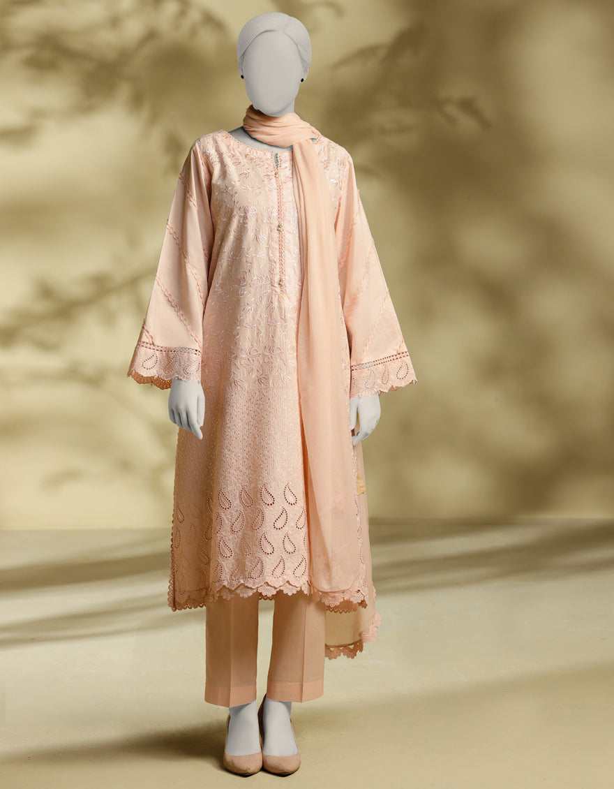 PINK LAWN 3PC STITCHED | JLAWN-S-25-240/S CHIKENKARI-03