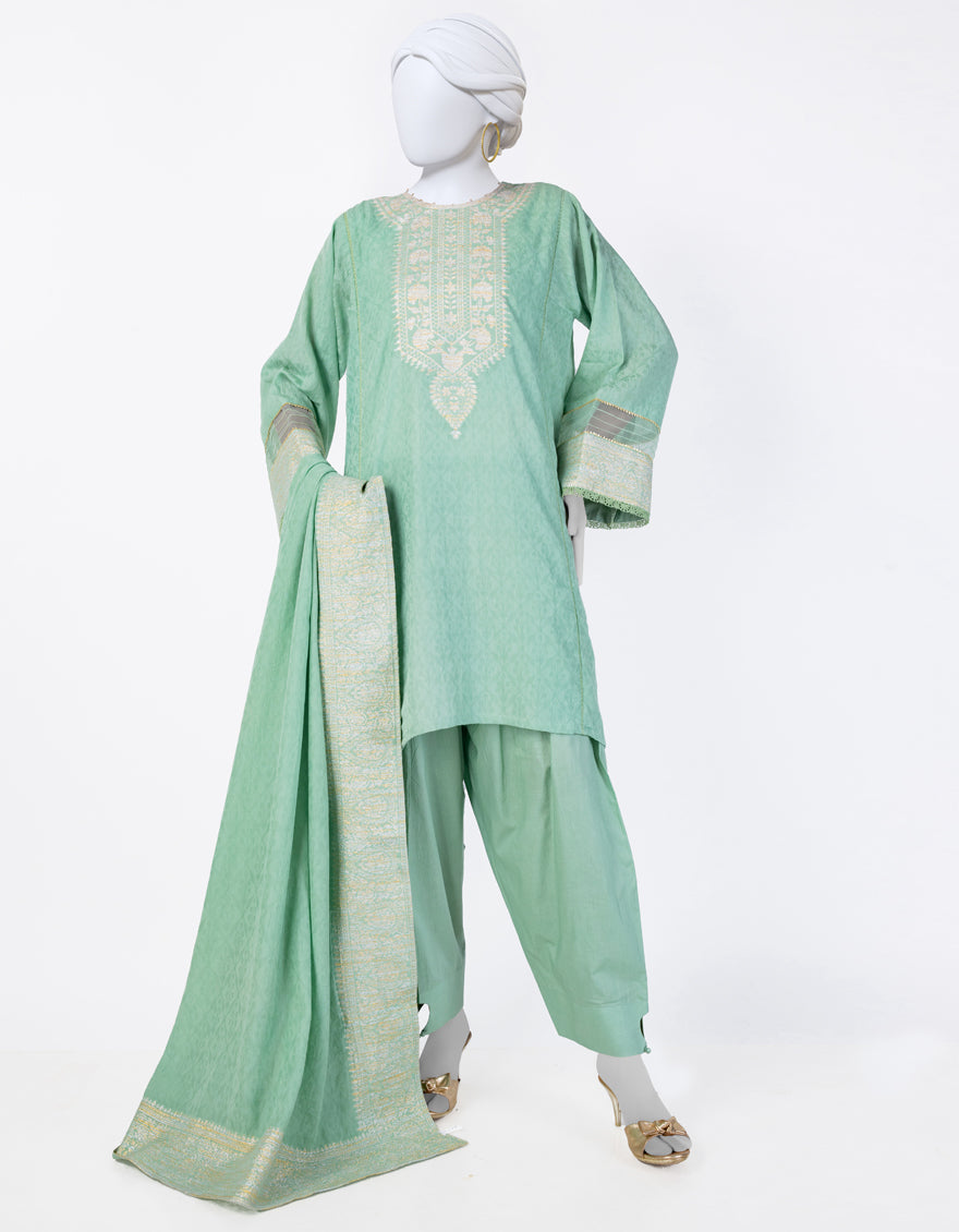 GREEN JACQUARD 3PC STITCHED | JLAWN-S-25-848/S CLASSICAL REFLECTION-04