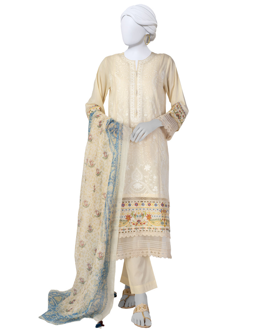 OFF WHITE LAWN 3PC STITCHED | JLAWN-S-25-918/S LUX
