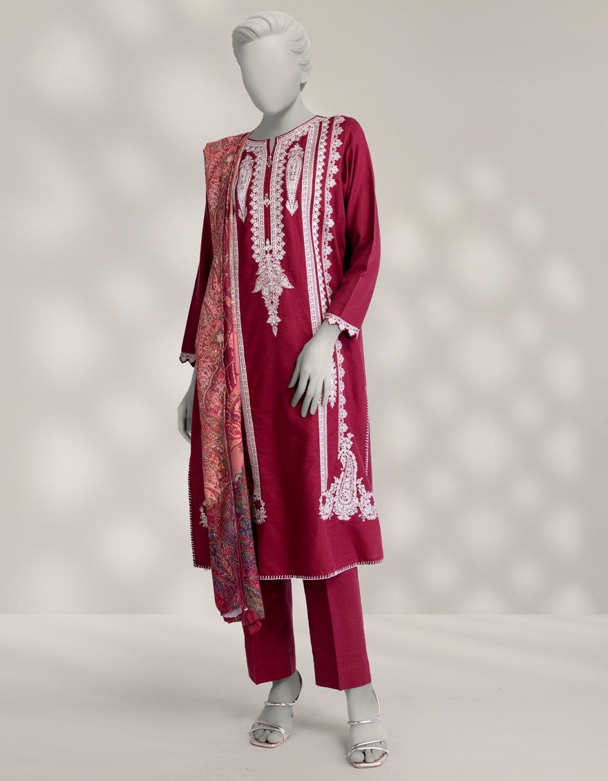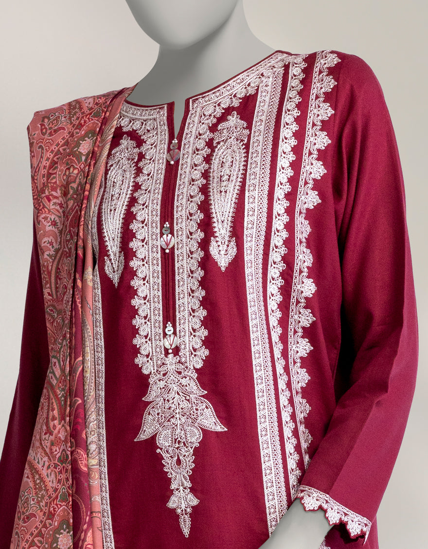 MAROON PASHMINA 3PC STITCHED | JLAWN-W-25-307/S KASHMIRI-03