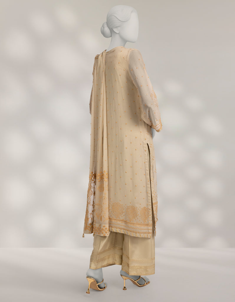 BEIGE IMPURE CHIFFON 3PC STITCHED | JLAWN-W-25-321/S KAMDANI-01