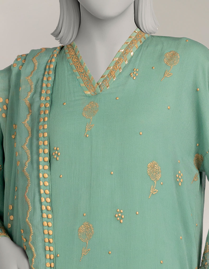 GREEN IMPURE CHIFFON 3PC STITCHED | JLAWN-W-25-322/S KAMDANI-02