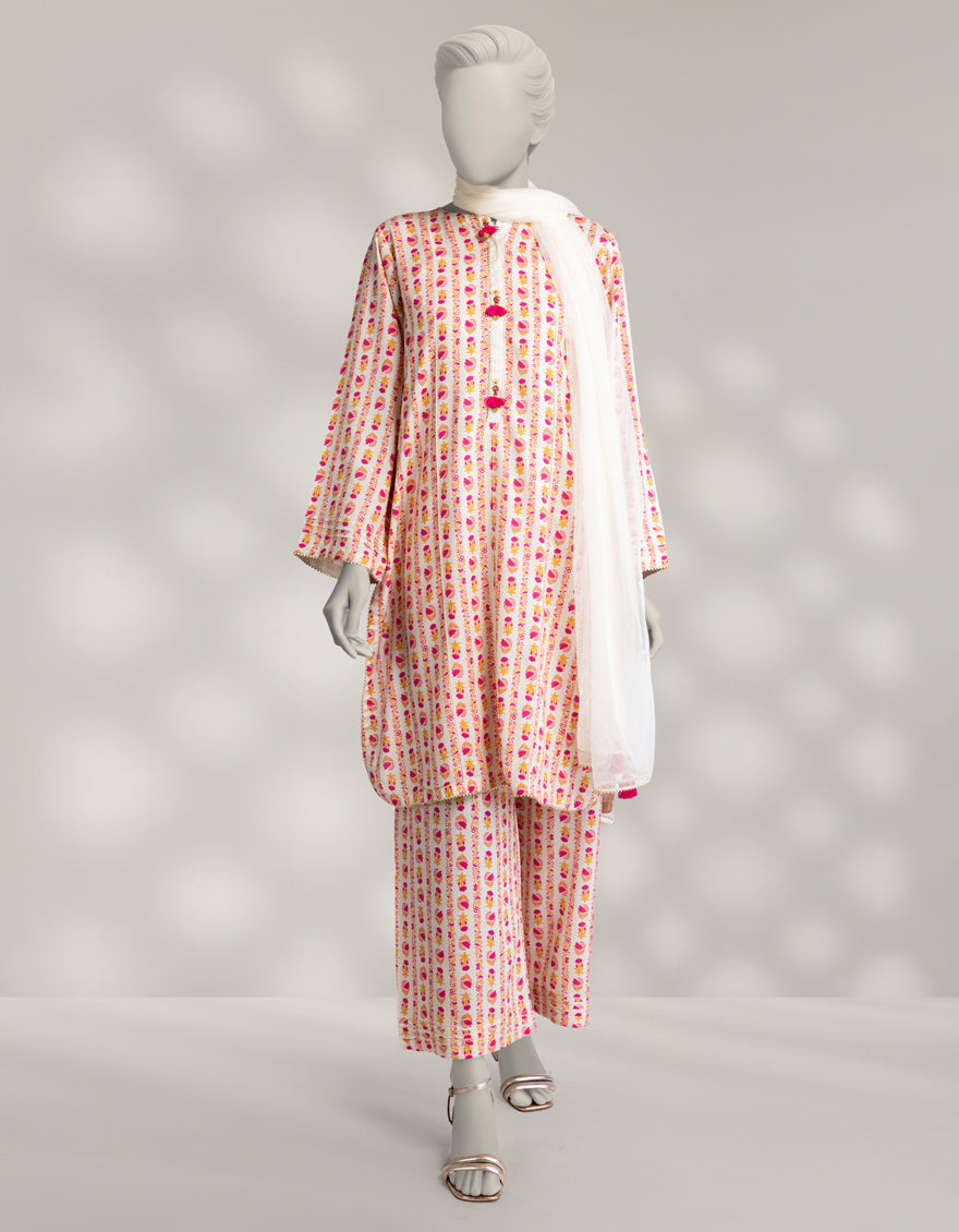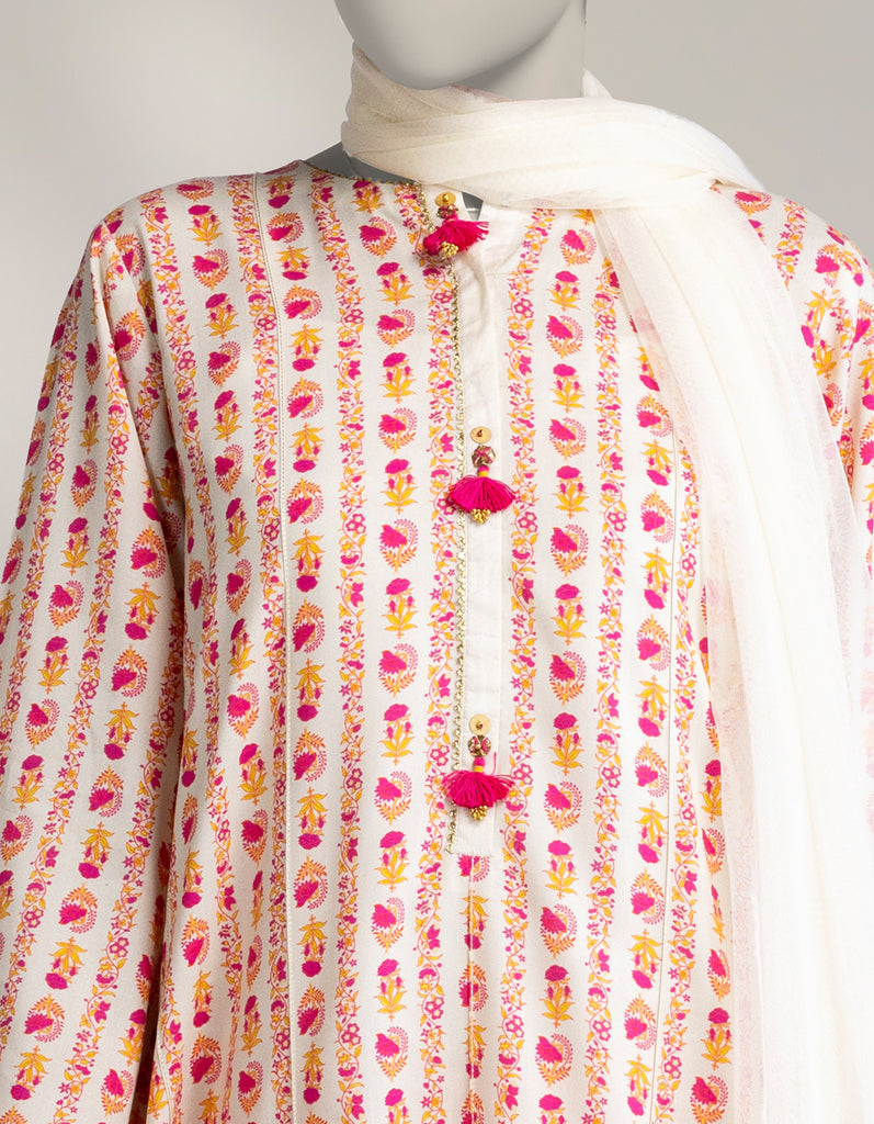 Collection: Basic Digital Print Linen Shirt - Digital Print Basic Linen Trouser - Basic Dyed Polynet Dupatta