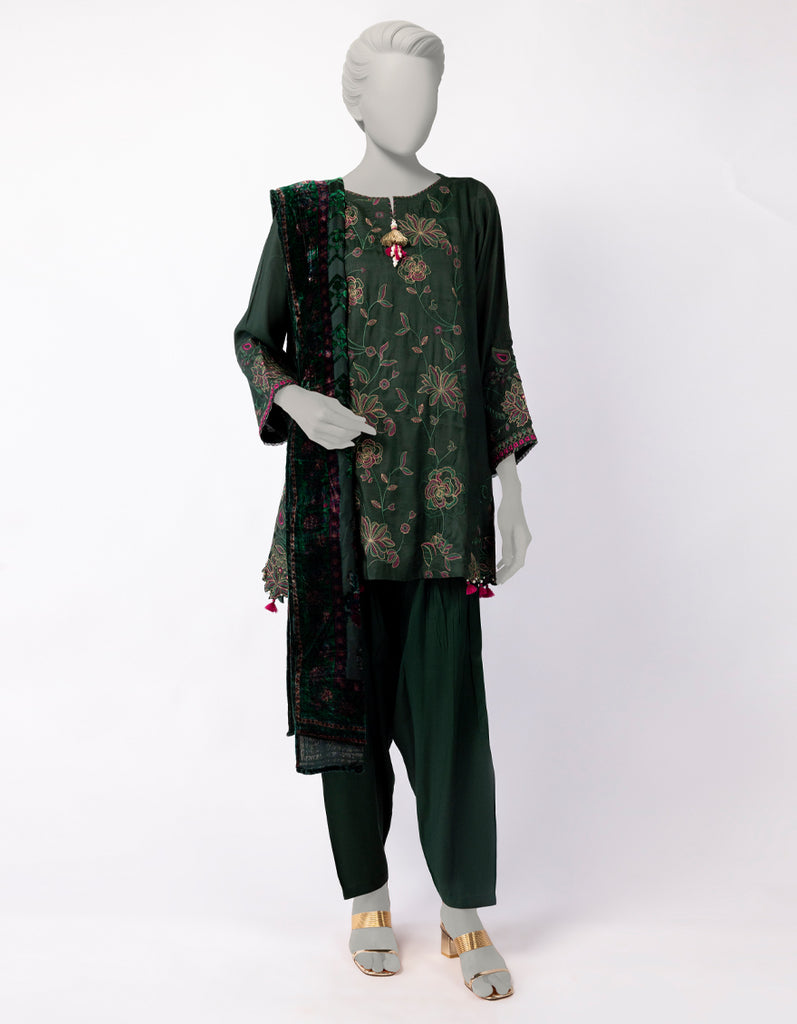 GREEN LINEN 3PC STITCHED | JLAWN-W-25-345/S CLASSIC-1