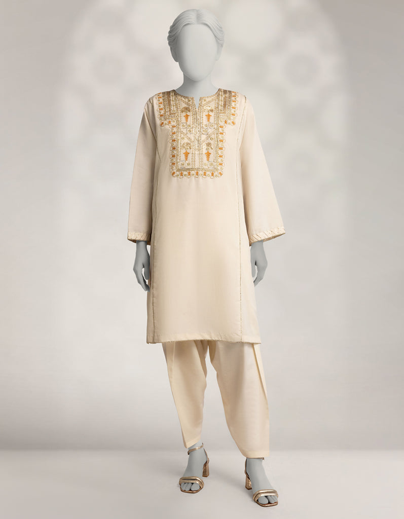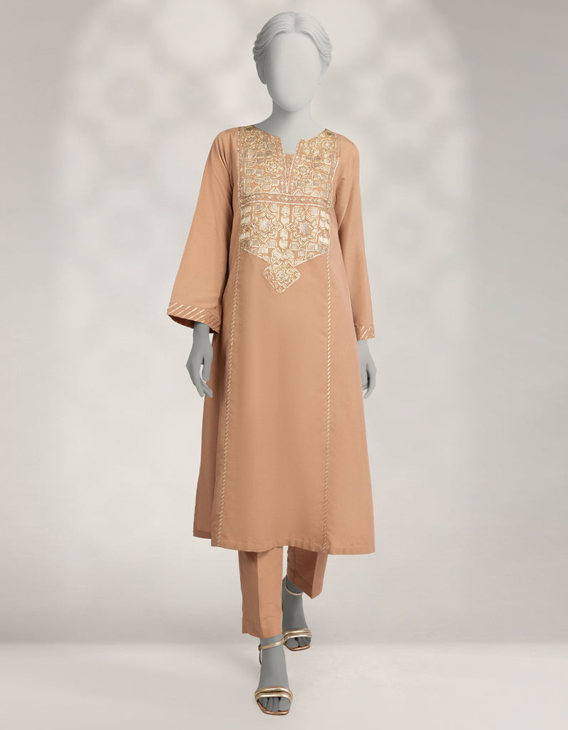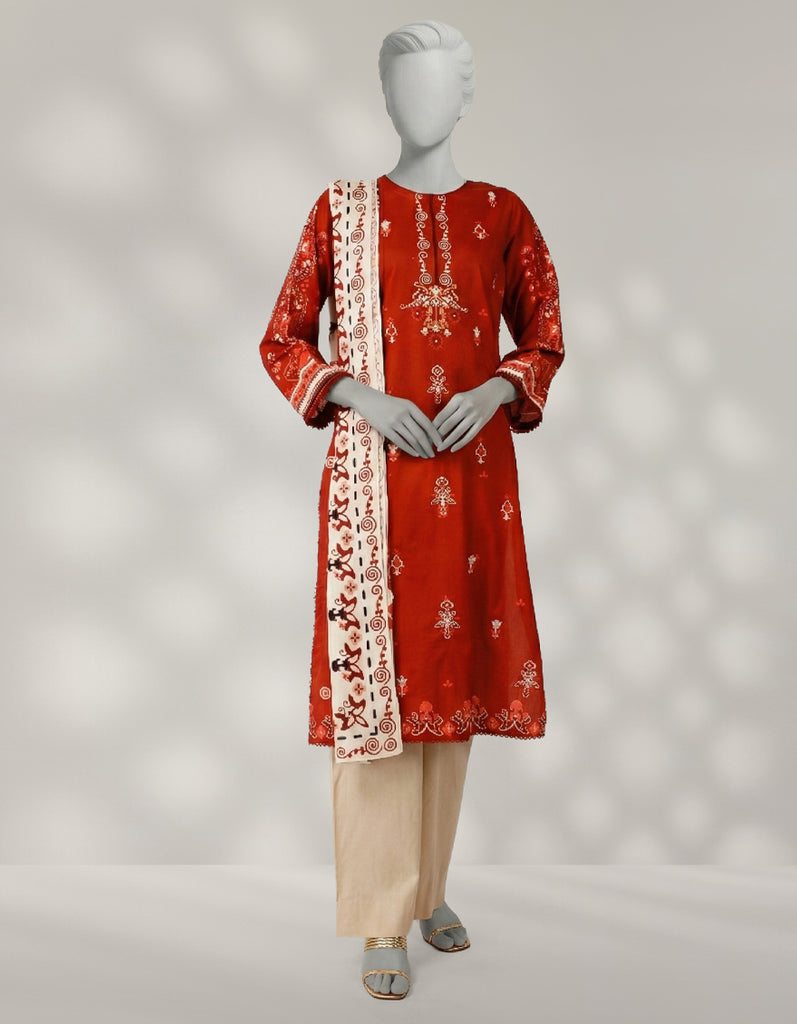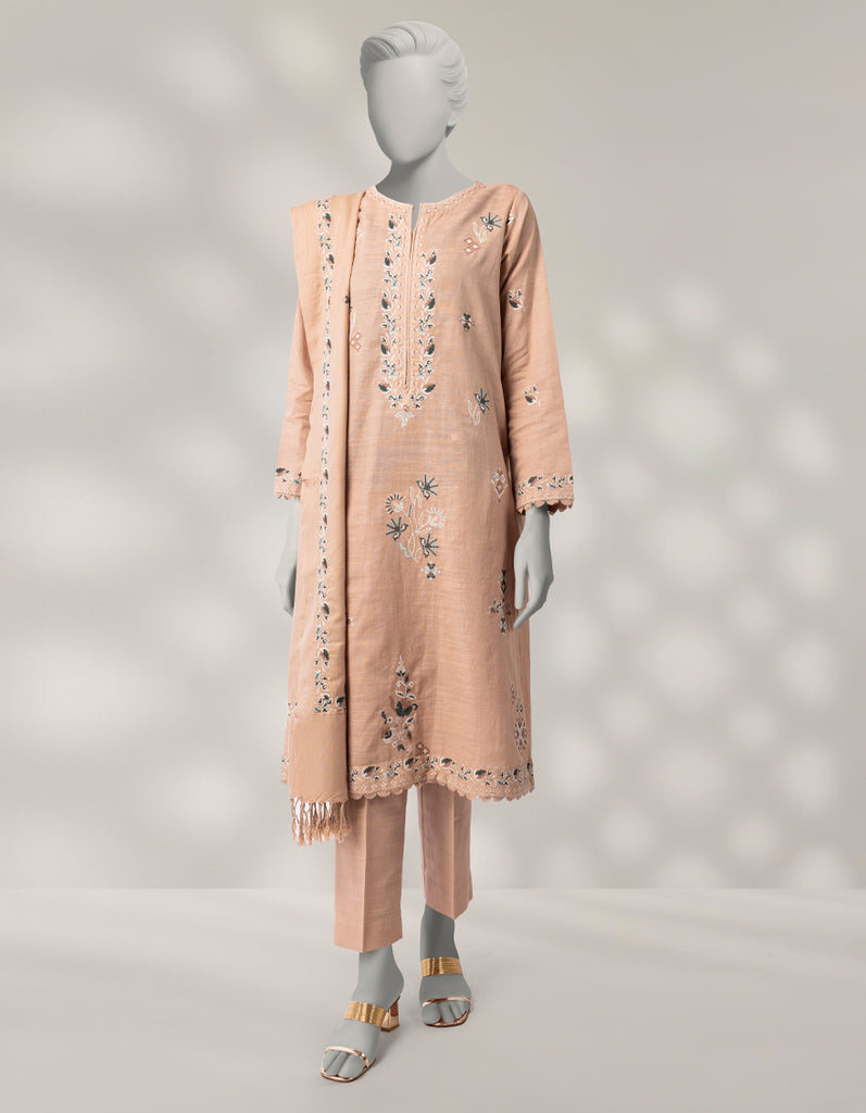 BEIGE KHADDAR 3PC STITCHED | JLAWN-W-25-335/S CROSS STICH-3