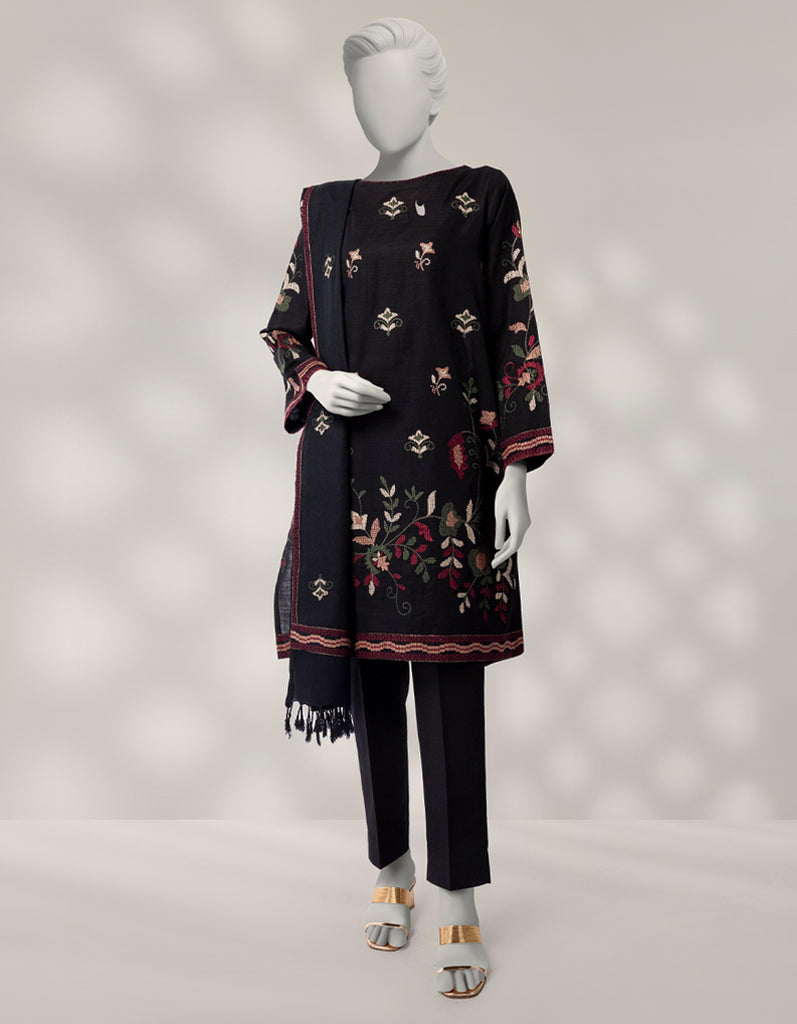 BLACK KHADDAR 3PC STITCHED | JLAWN-W-25-334/S CROSS STICH-2