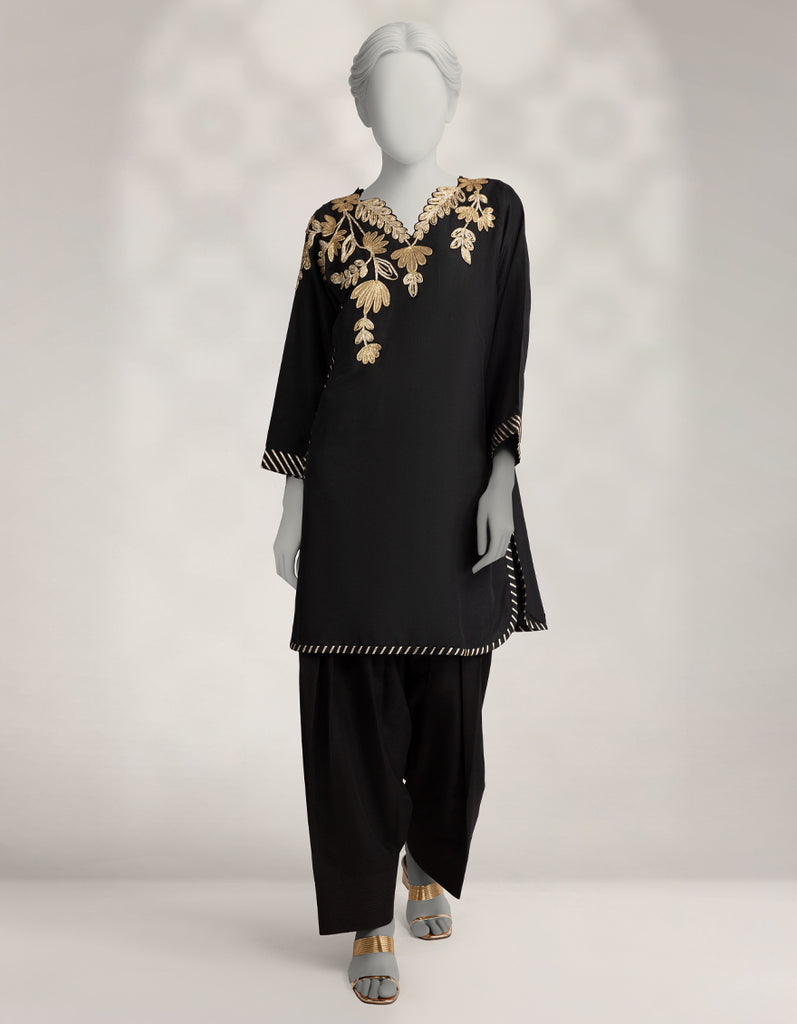 BLACK RAW SILK 2PC STITCHED | JLAWN-W-JST-25-2325/S GOTTA-03