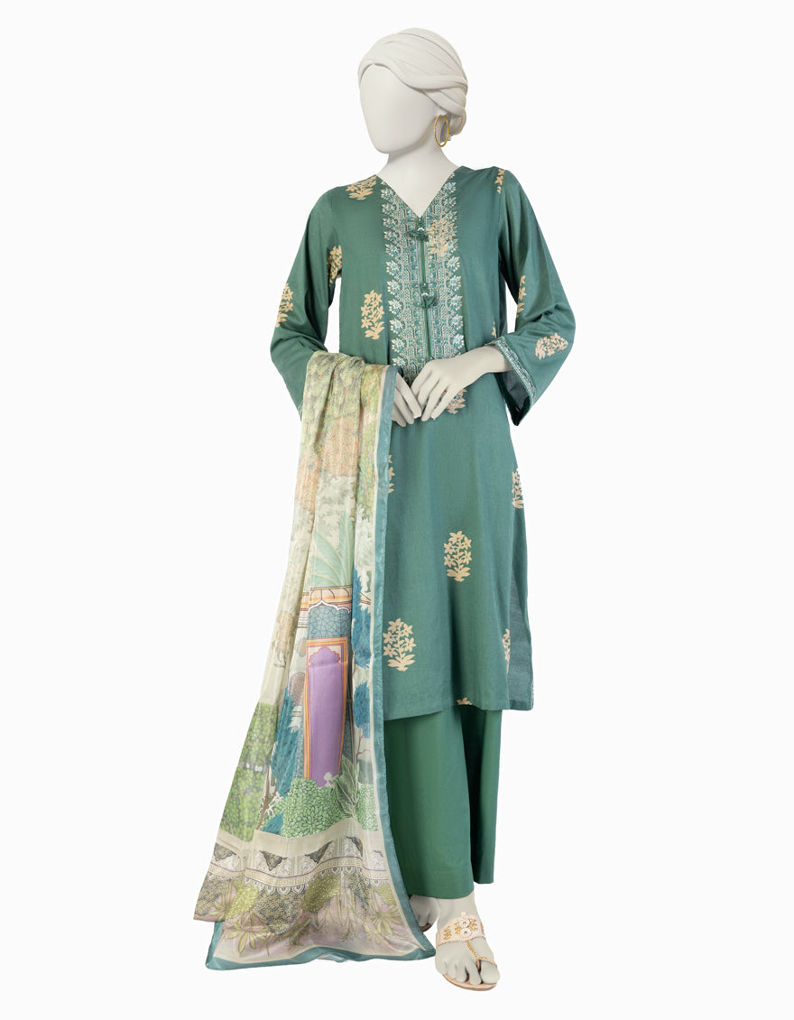 GREEN LAWN 3PC UNSTITCHED | JLAWN-S-25-906 MUGHA