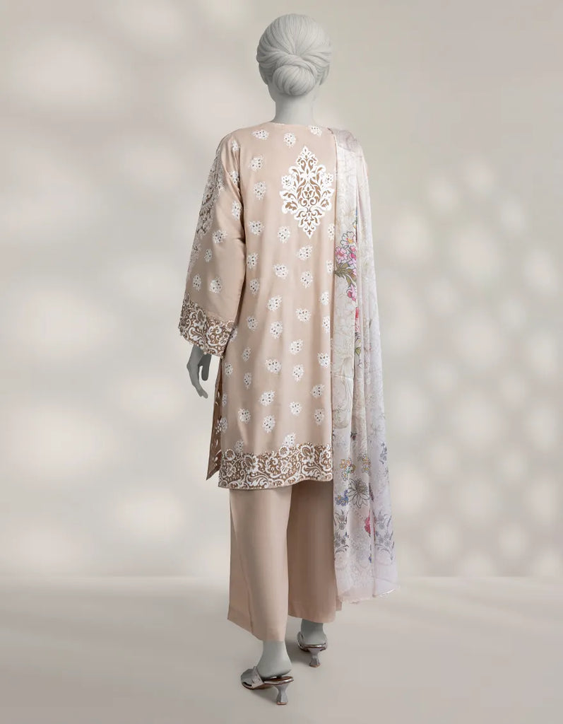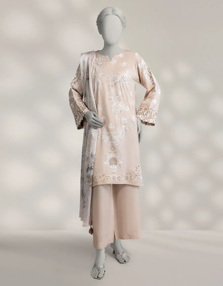 BEIGE MAPLE SILK 3PC STITCHED | JLAWN-W-25-329/S DAMASK-01
