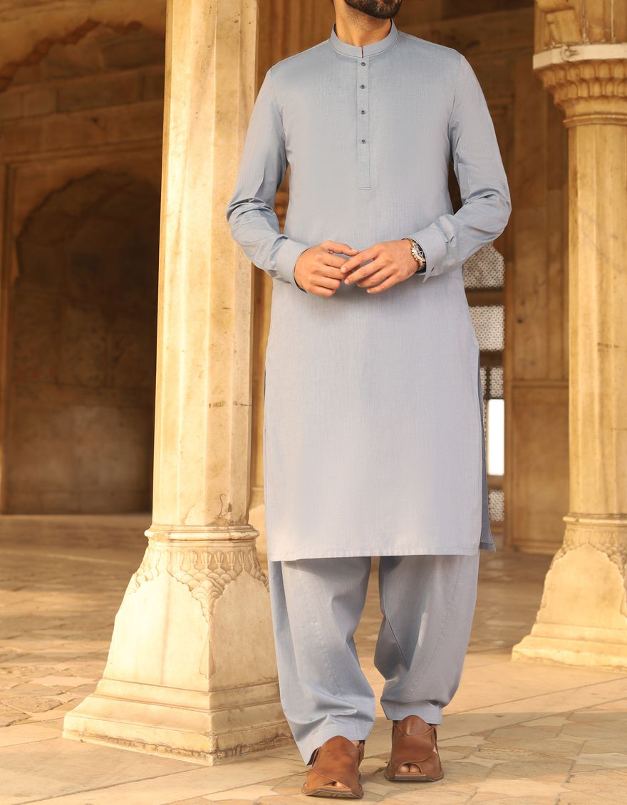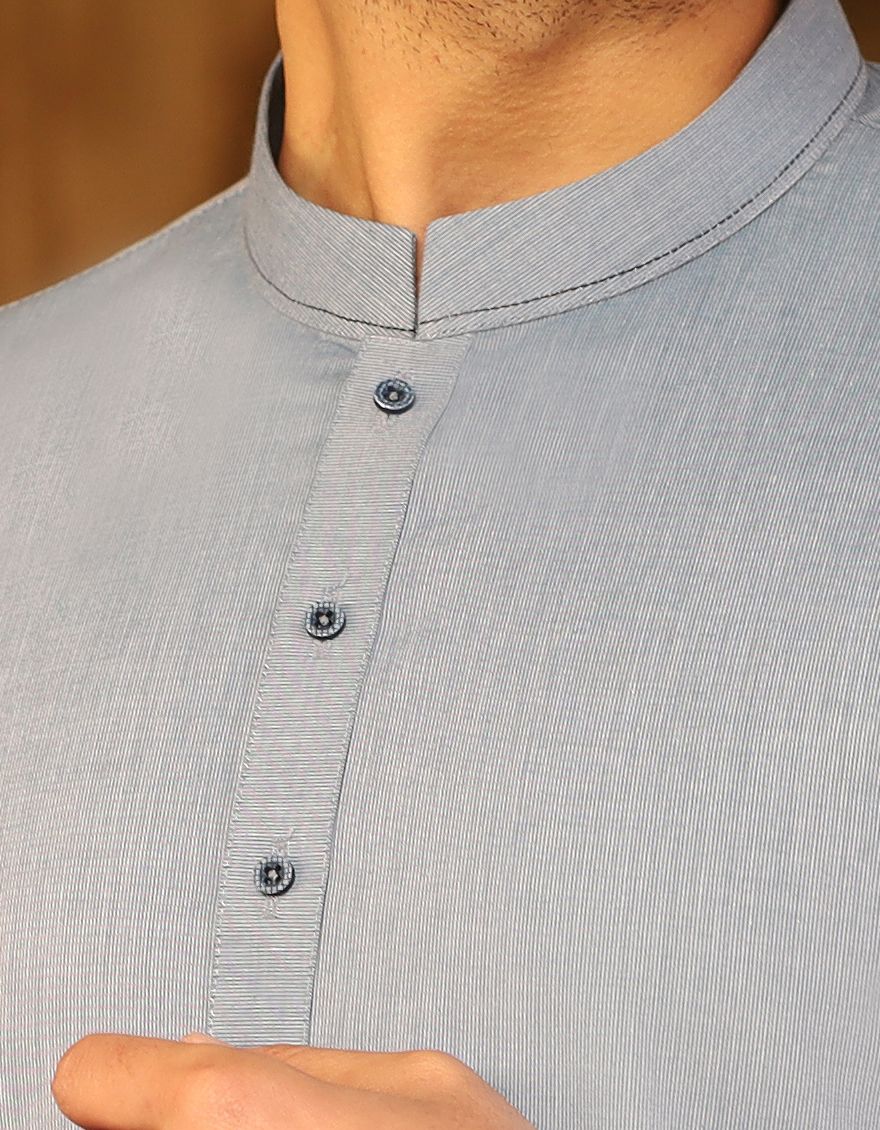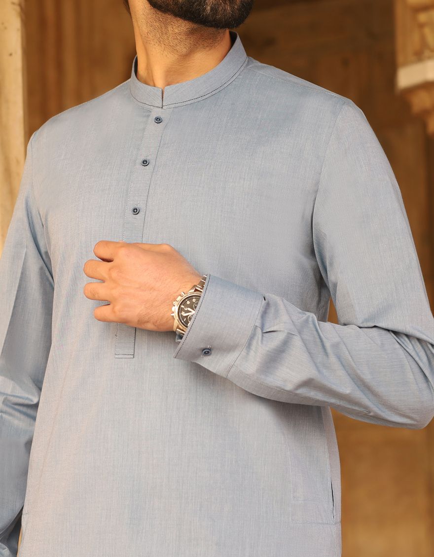 Plain Suit For Men With Stitching Detail On Collar, Placket & Cuff.