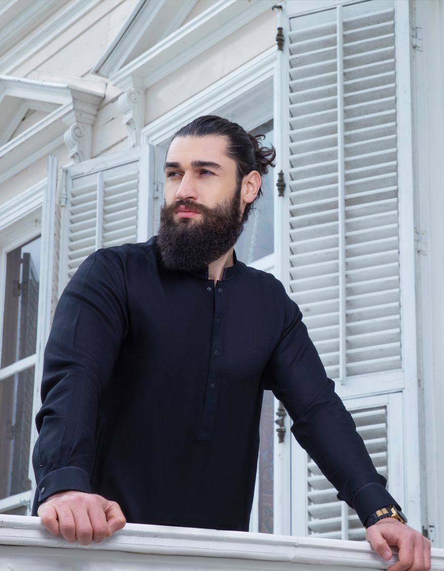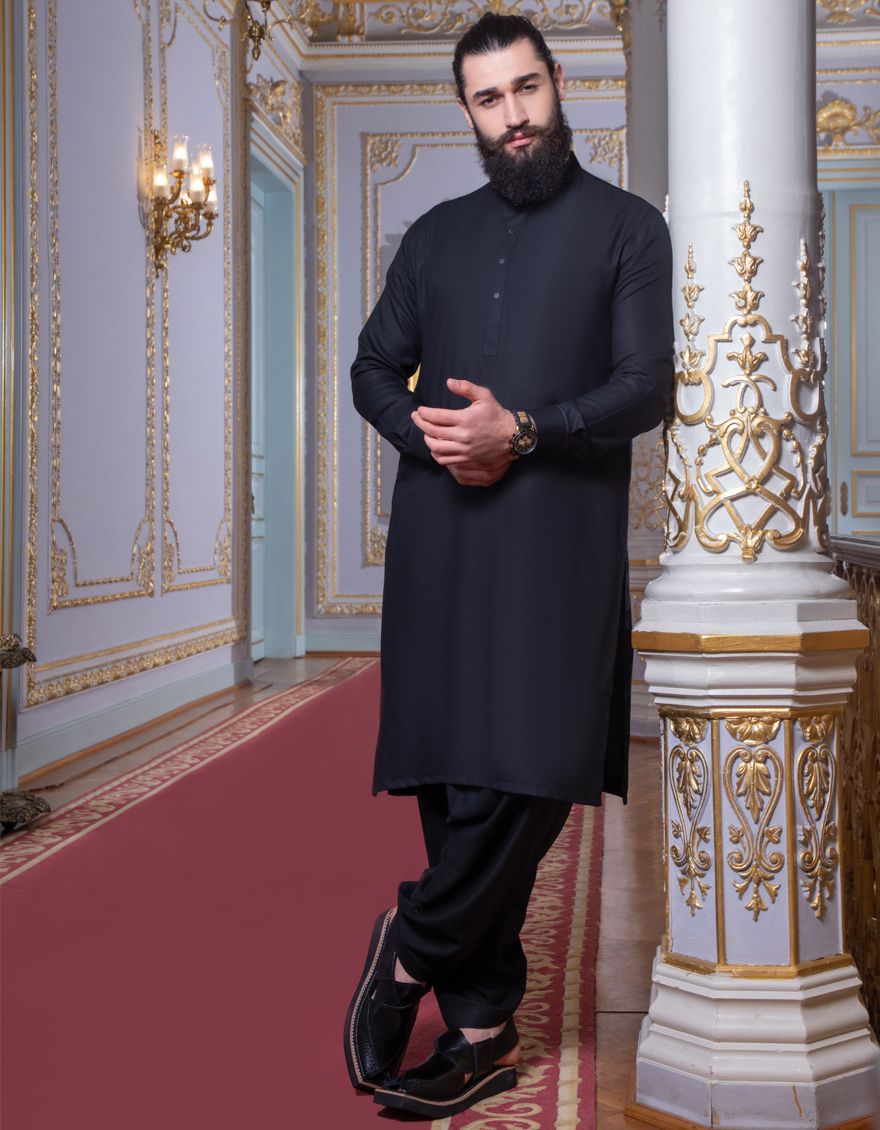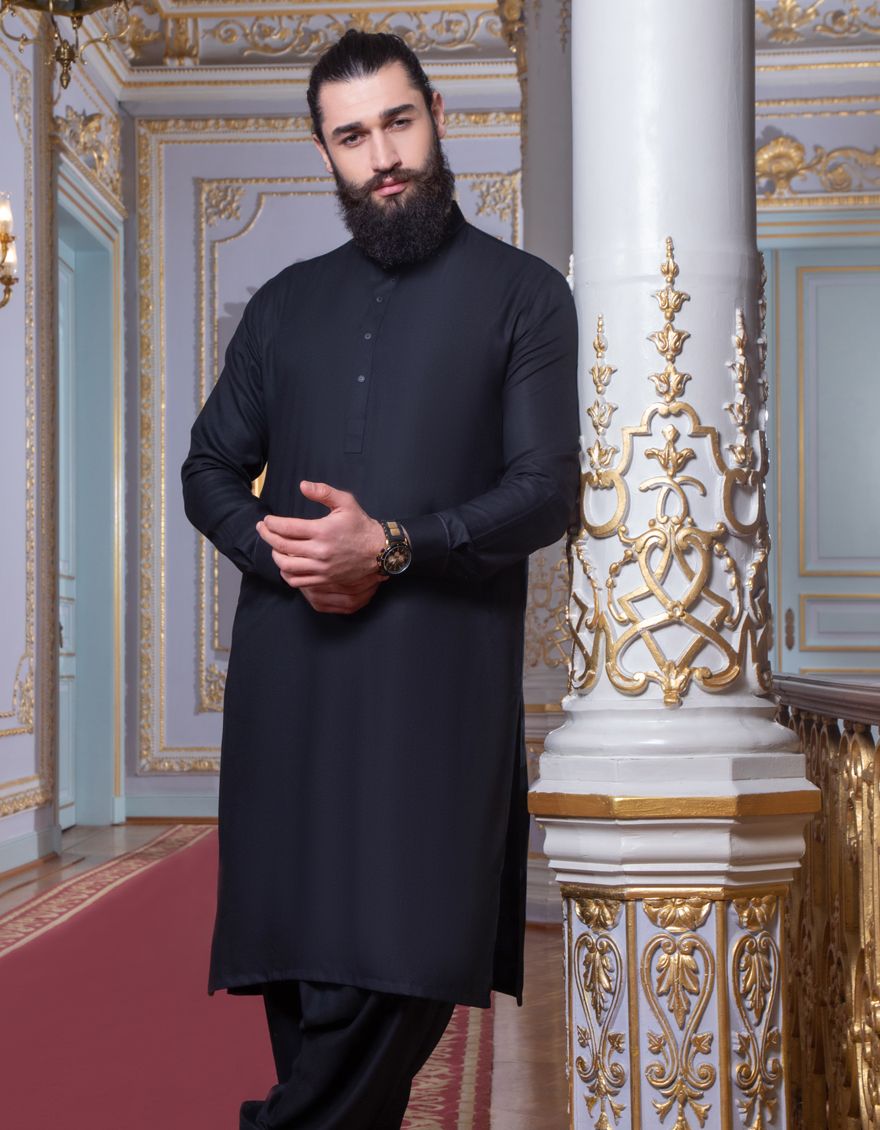 Casual Kameez Shalwar For Men, With Cuts Work On Collar & Cuff.