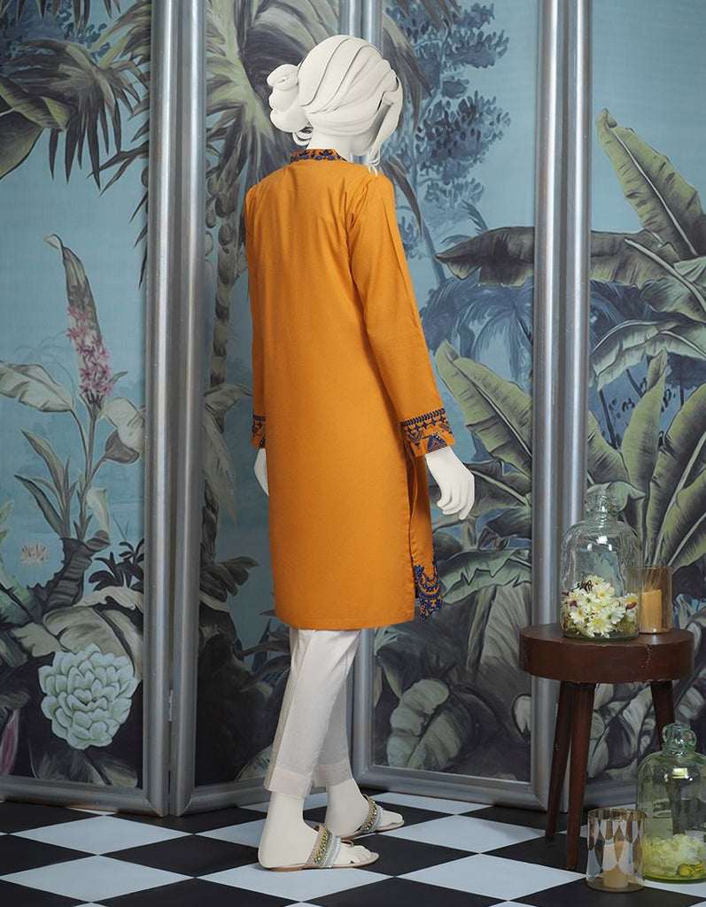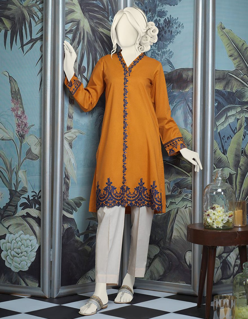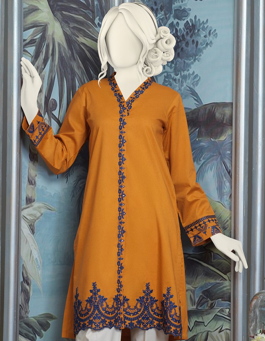 Straight Shirt With Embroidered Border On The Whole Placket And Hemline. Straight Sleeves With Embroidery On The Cuff