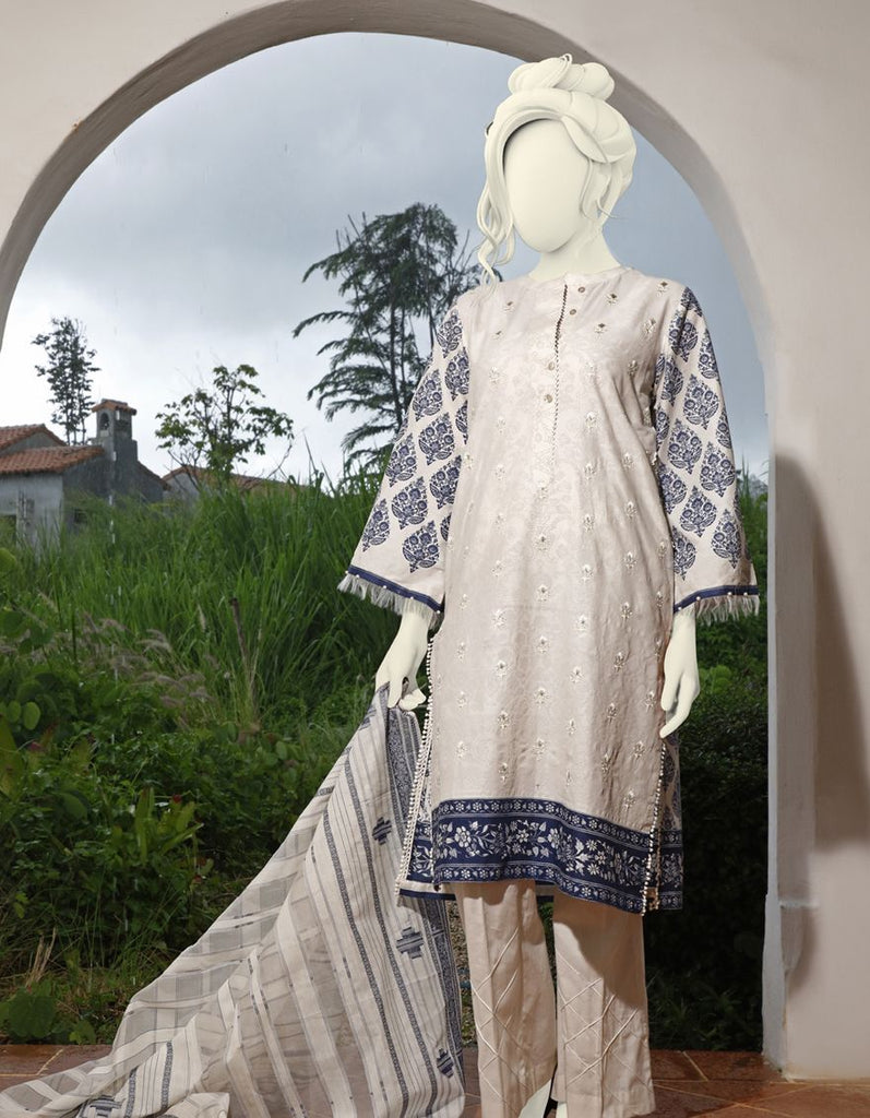 Embroidered Cambric Shirt with Jacquard Dupatta