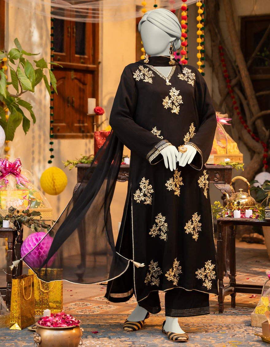 BLACK CHIFFON 3PC STITCHED | JLAWN-S-25-165/S SHIMMERING CHIC-04